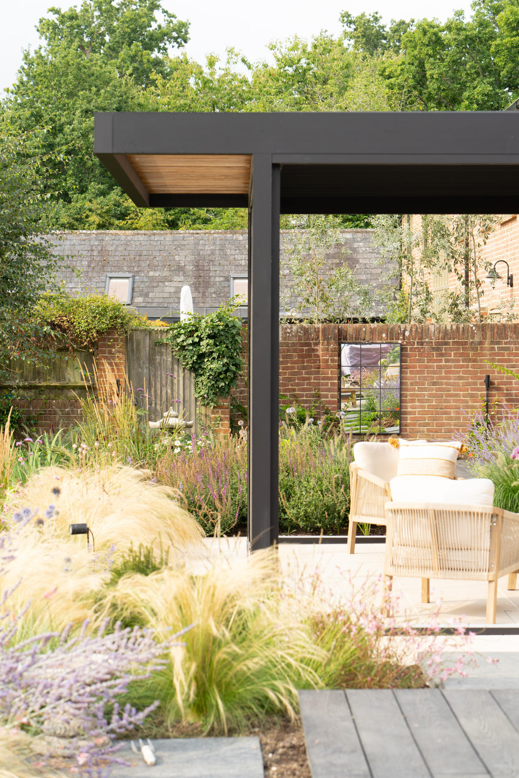 This project shows how a small addition to a spectacular family home can make a remarkable contribution to the design, function, and near year-round use a pergola can offer. The client wanted to be able to work in and enjoy an outdoor space that connected them to the outdoors, yet provided daily shelter. Using our sliding glass panel system, heat stays in and the rain stays at bay on cooler, wetter days. Yet when the sun is out and there is a lovely cross breeze, the glass panels and louvres can be opened.