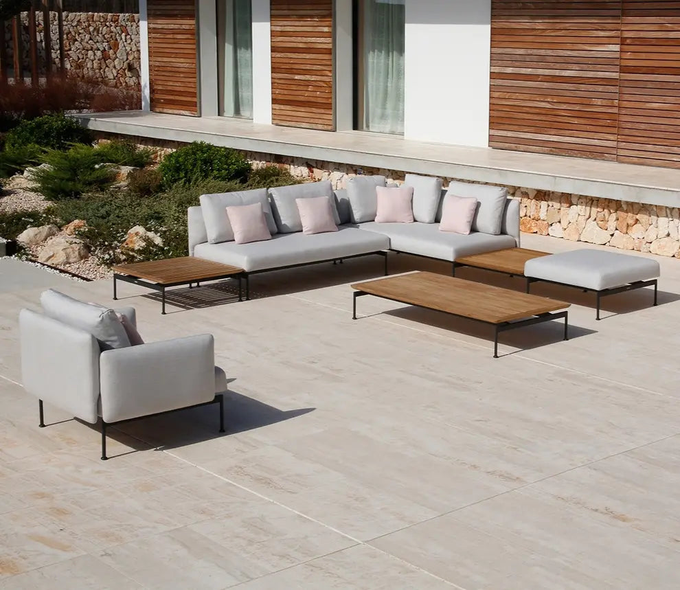 Introducing the Barlow Tyrie Layout Deep Seating Double Corner Seat – High Arm, a premium modular component from the Layout collection designed for expansive outdoor living arrangements. This generous double corner seat with distinctive high armrests provides luxurious seating for two while serving as a versatile junction piece for creating sophisticated L-shapes, U-shapes, and expansive conversation areas with seamless connectivity to other Layout modules.