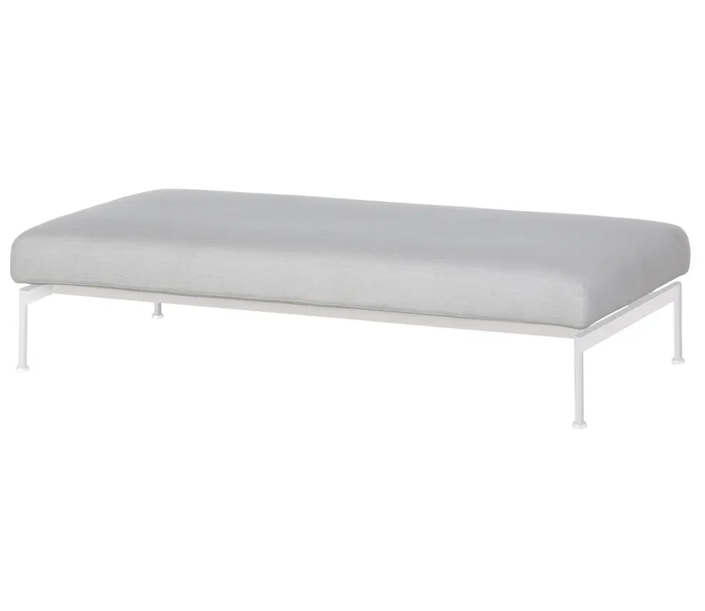 Introducing the Barlow Tyrie Layout Deep Seating Double Ottoman, a spacious modular component from the Layout collection designed for customized outdoor living arrangements. This expansive double ottoman serves as a generous footrest, extra seating for two, or low coffee table (cushion removable) with seamless connectivity to other Layout modules.