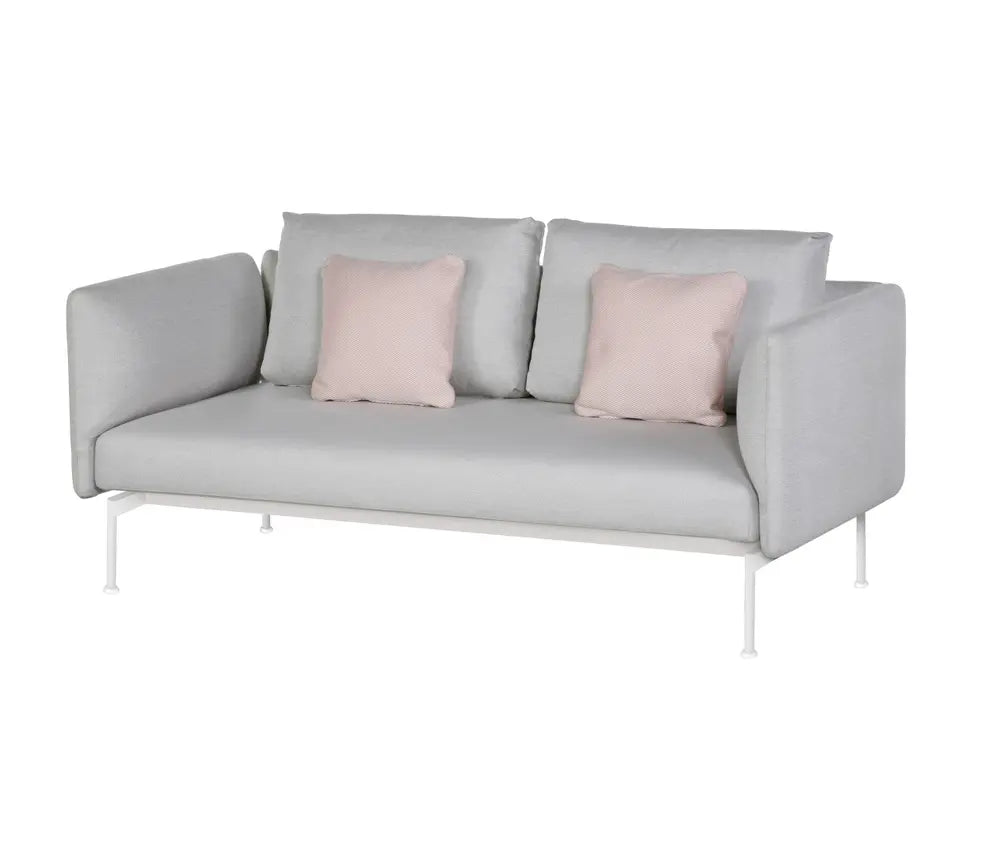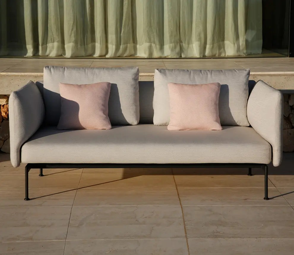 High Arm Profile: Elevated arms provide enhanced comfort, privacy, and sophisticated styling perfect for modern outdoor spaces. Neutral Frame Options: Arctic White for bright coastal settings or Forge Grey for sophisticated urban patios accommodating two guests comfortably.