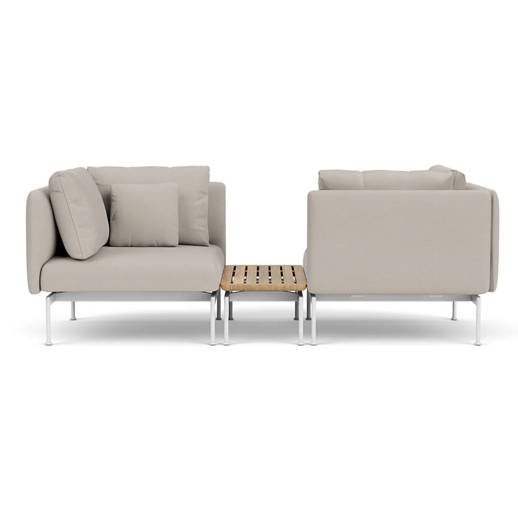 Introducing the Barlow Tyrie Layout Deep Seating Tête-à-Tête Set, an intimate two-seat configuration from the Layout collection featuring integrated central teak table surface between dual loungers. This elegantly engineered set combines sophisticated high arm comfort for two with practical shared table functionality for refined outdoor conversations.