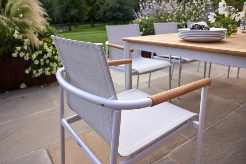 The sets are made out of an FSC-Quality teak, which matures beautifully and has a silver-grey patina, which is full of character. Use them with Barlow Tyrie luxury cushions and sustainable teak garden furniture to add some comfort and style.