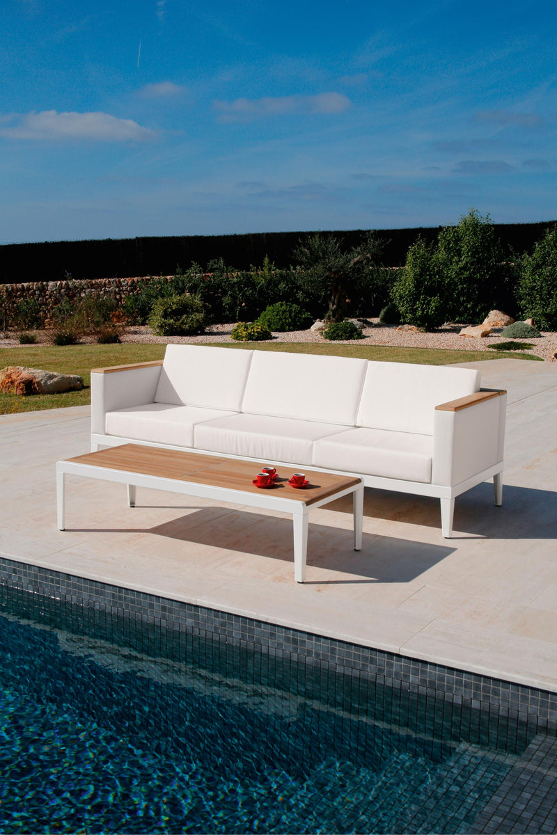 Barlow Tyrie's outdoor teak seating collection, from sofas and benches, takes outdoor teak furniture out into the garden. The deep-seated, weathered-cushion Haven Teak Sofa is a designer's choice for setting up snug outdoor lounges.