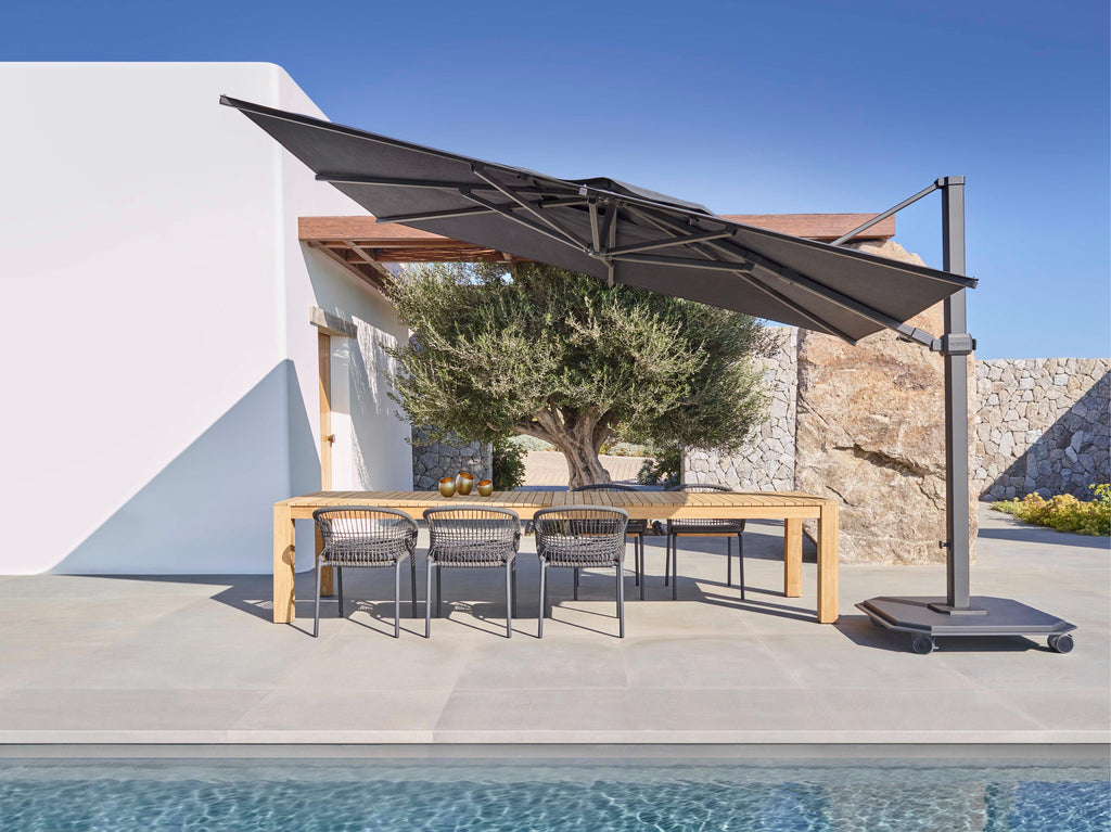 Introducing the Jardinico Caractère JCP.4 Series Umbrella, a premium cantilever umbrella designed to provide exceptional shade and comfort for large outdoor areas. Its modern structure and durable materials make it an elegant and functional addition to any terrace, garden, or patio.