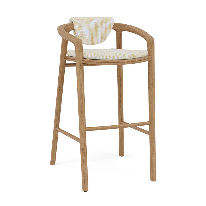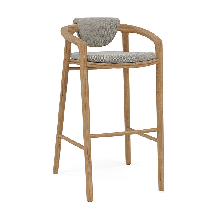 - Innovative Solid Teak Design: The Solid collection balances technological innovation with authentic craftsmanship, resulting in a bar-height stool that is both functional and artistically compelling, showcasing the natural beauty and structural integrity of solid teak.