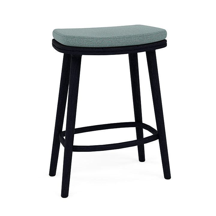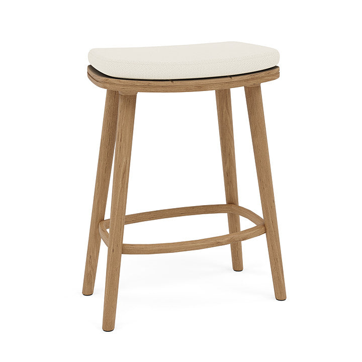 The Solid Counter Height Stool offers compact yet comfortable dimensions—19.0" width x 10.0" depth x 24.4" height (49cm x 26cm x 61cm) with 19.0" (49cm) top width—ideal for 90cm counter tables and islands, while its solid teak frame and optional outdoor cushion ensure long-term comfort and durability.