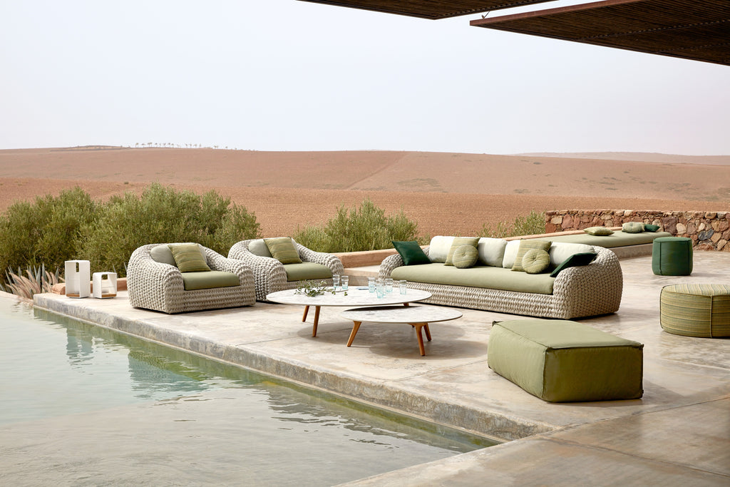Multi-Purpose Functionality: The Touch 112x65 pouf serves as a luxurious footrest with Touch lounge chairs and sofas, comfortable supplementary seating for outdoor entertaining, or as a stylish low coffee table when paired with a decorative tray, ideal for terraces, patios, pool decks and resort lounge areas.