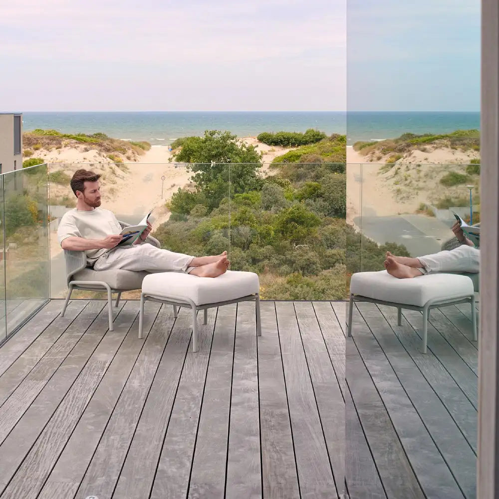 High-Performance Frame: The robust stainless steel frame is finished with a durable powder coating in Lava or Flint, offering exceptional corrosion resistance, structural stability and a refined matte surface that withstands intensive outdoor use in residential and hospitality lounge settings.