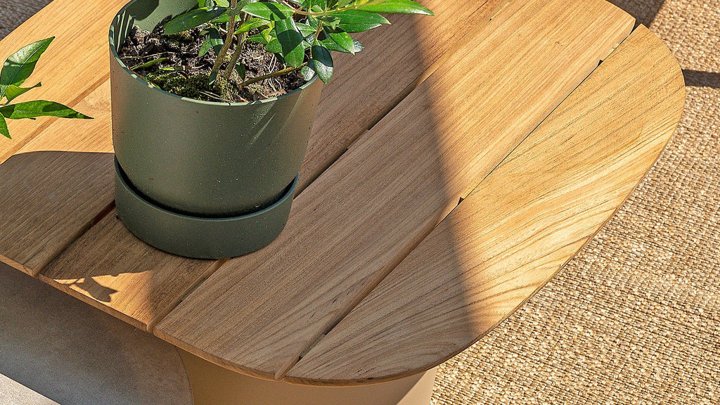 • 1 × Demi Coffee Table – Natural Teak / Latte (50 × 60 × 36.5 cm)