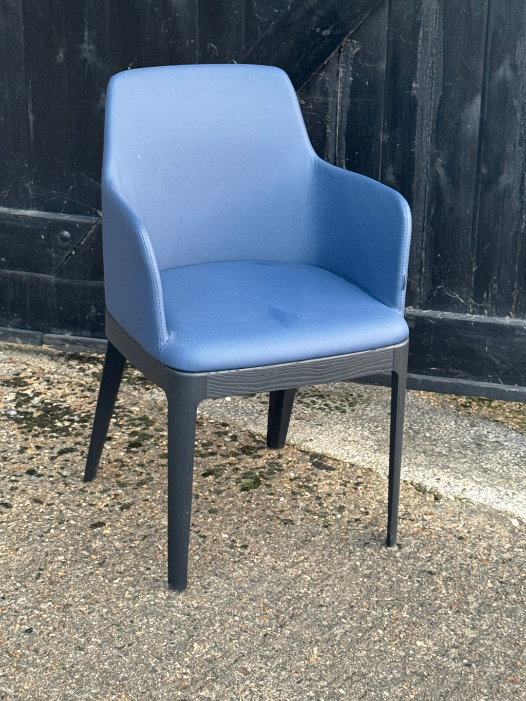 Code: 40.45. Margot With Arms, Solid Wood Frame in Spessart Oak L002, Upholstery Synthetic Leather Blue. Retail price per chair £894.