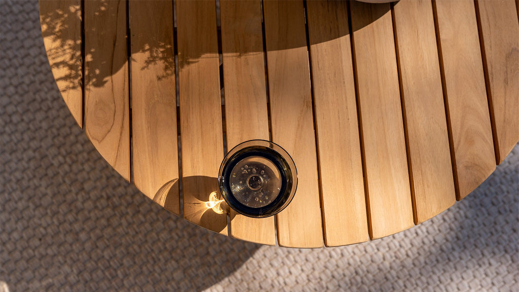 | 1 × Verdi Side Table | Round natural teak top – 45 cm diameter × 55 cm height |