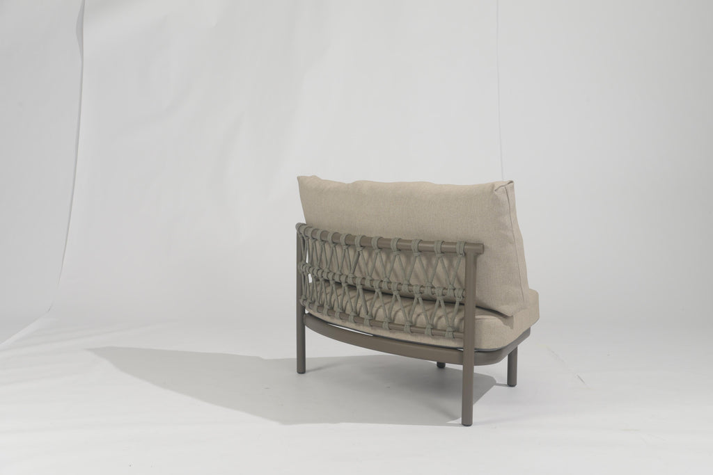 The 4 Seasons Outdoor Piacenza Terre XL Corner offers luxurious comfort and timeless outdoor style. Designed with durable rope detailing and a powder-coated aluminium/steel frame in elegant terre tones, this corner module delivers both strength and sophisticated aesthetics. Supplied with two plush light-grey cushions, it provides exceptional comfort and durability, making it an ideal addition to any modern outdoor modular lounge setup.