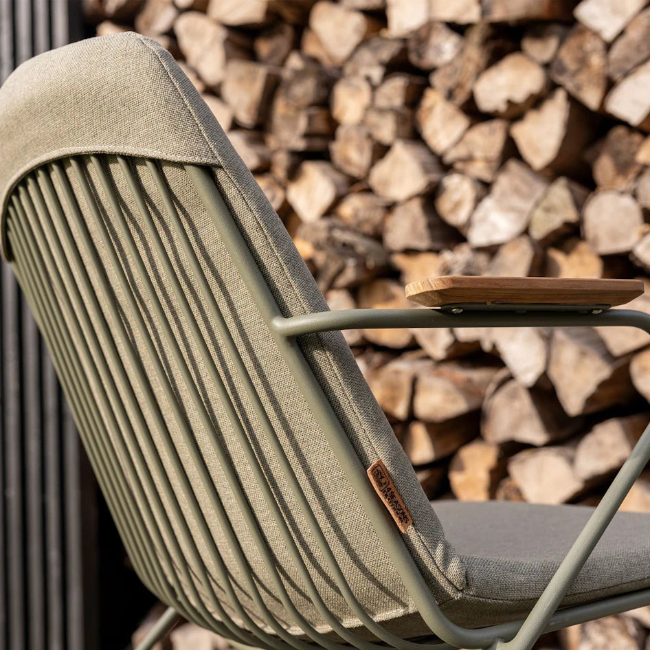 - Modern Elegance: A minimalist olive-toned frame paired with warm natural teak armrests for a sophisticated look.