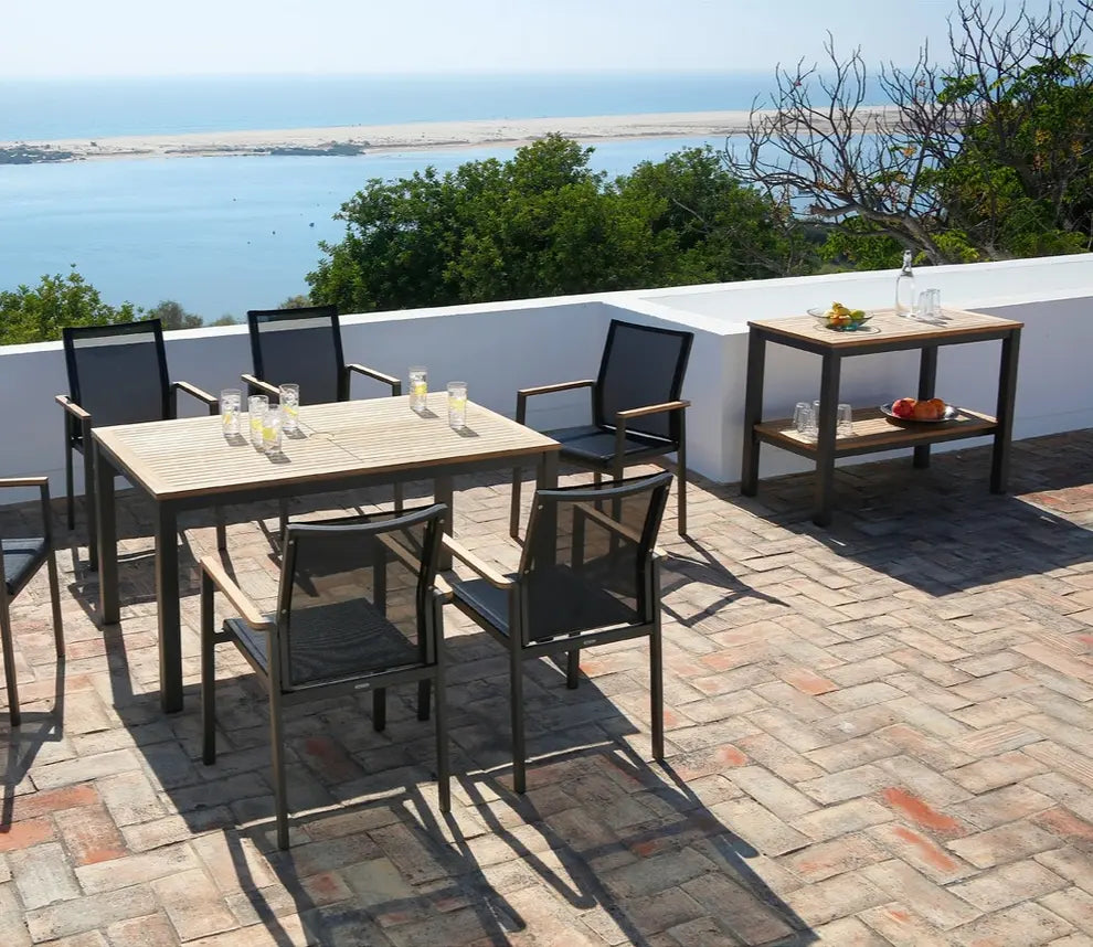 Barlow Tyrie perfects outdoor entertaining with the Aura Dining Serving Table — dual-level sophistication meets Grade-A teak warmth and aluminium accent innovation for versatile serving functionality with lightweight portability and 10-year warranty confidence.