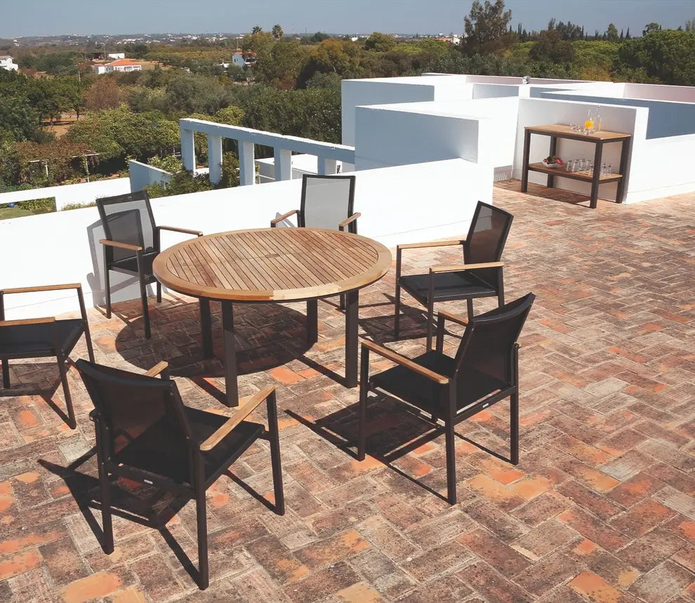 - Triple Frame Finish Options: Graphite, Arctic White, or Champagne powder-coated aluminium frame — all paired with natural teak surfaces for personalized outdoor entertaining aesthetics with heritage-modern fusion.