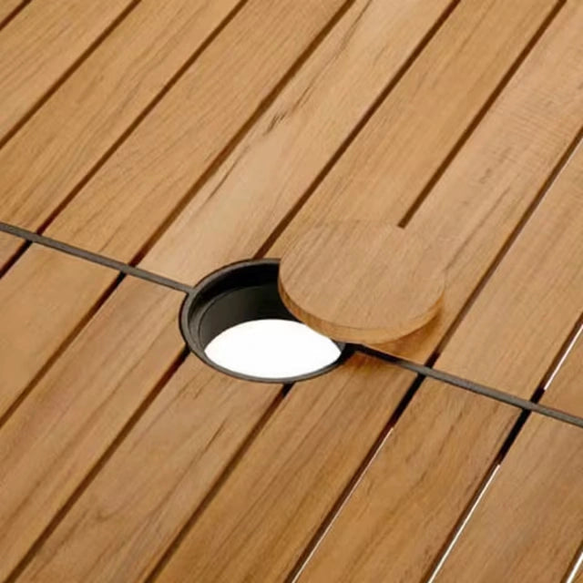 - Integrated Parasol System: Central parasol hole with aluminium surround includes teak plug for seamless appearance when parasol is not in use, offering flexible shade options for outdoor comfort.