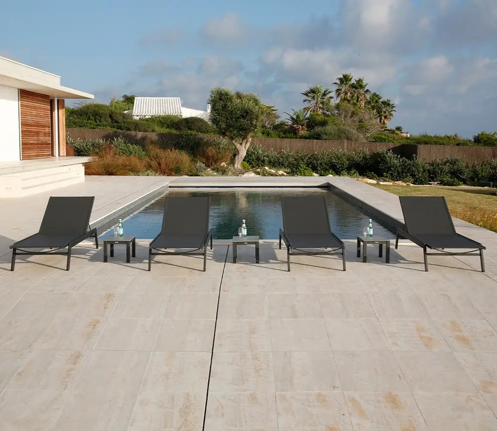 - Premium Sunbrella® Sling: High-performance UV-resistant sling fabric (Carbon, Seagull) for breathable comfort, quick-drying, and fade-resistant outdoor seating.