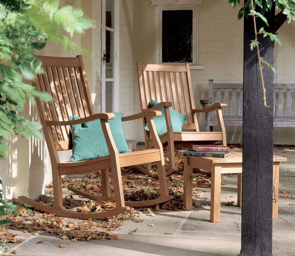 - No Cushions: Pure sculpted teak seat and back for traditional, low-maintenance rocking indoors or out.