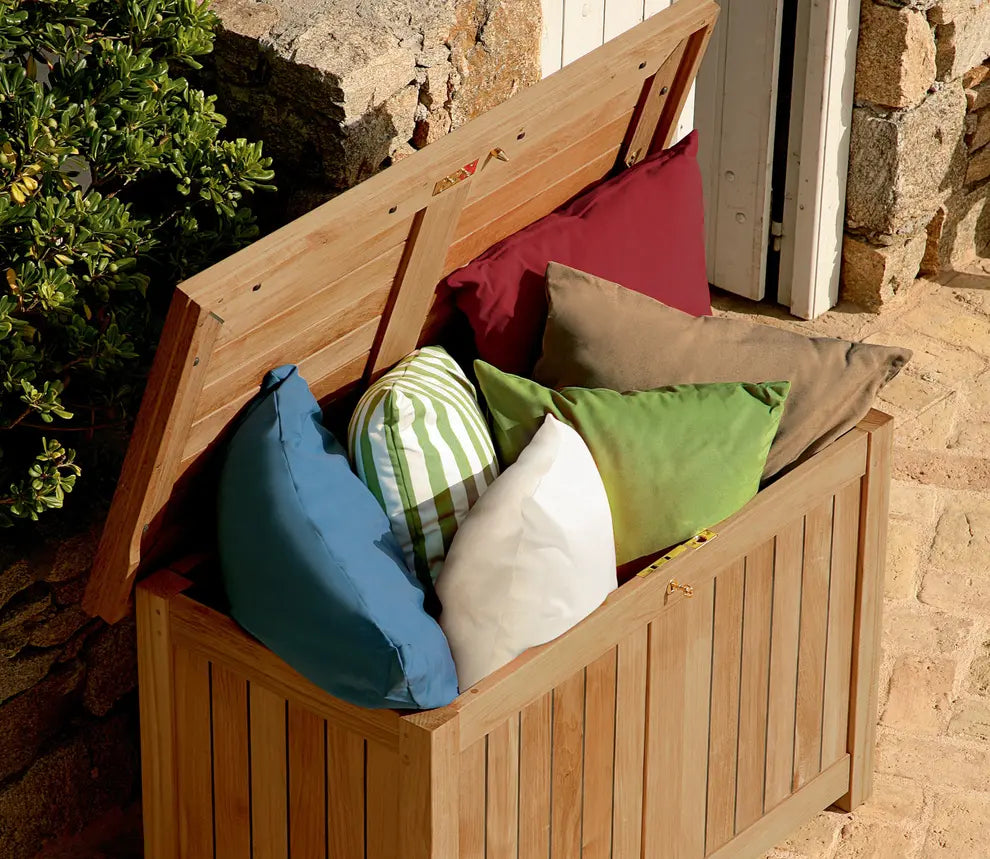 - Elegant Teak Design: Clean lines and natural teak finish complement any outdoor aesthetic while serving as functional storage.