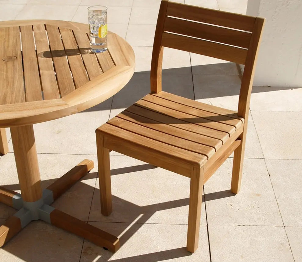 Circular Slatted Surface: Fine teak slats provide stable dining area with natural water drainage.