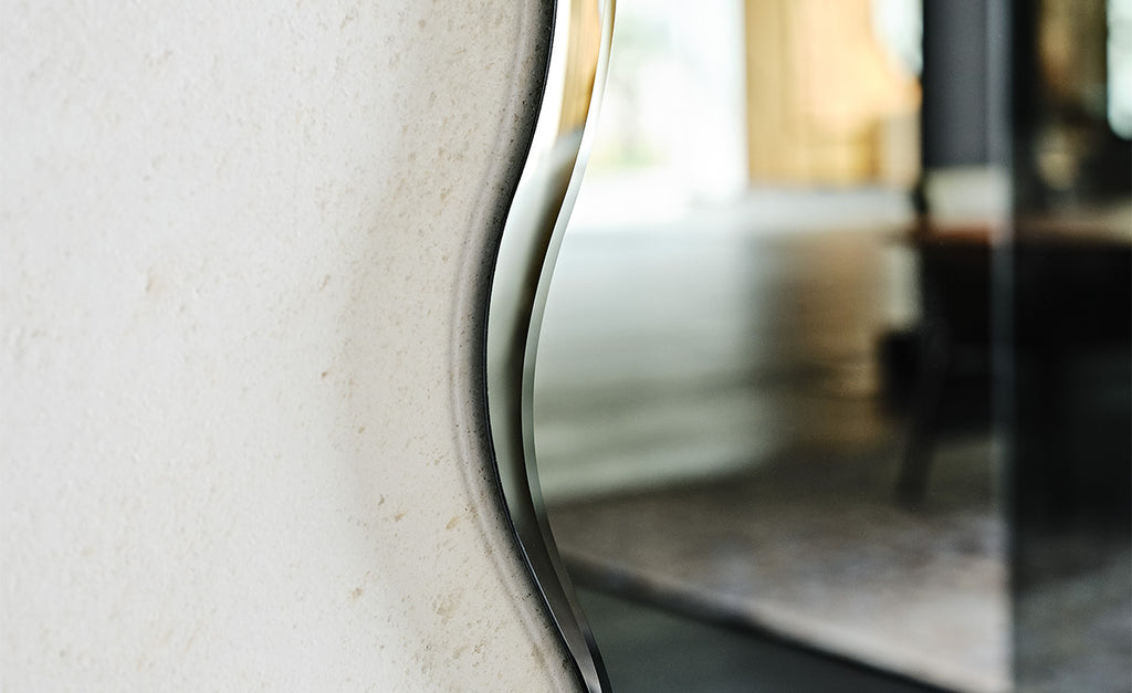 The Africa Magnum mirror brings scale and spirit together. Inspired by the cradle of civilization, this sculptural piece celebrates the richness of nature, tribal traditions, and the magic of African nights. The fluid silhouette wraps the human form in reflection while highlighting every detail of the unique continent — including Madagascar. Available in two sizes: Africa and Africa Magnum, this version is perfect for large walls that deserve bold personality.