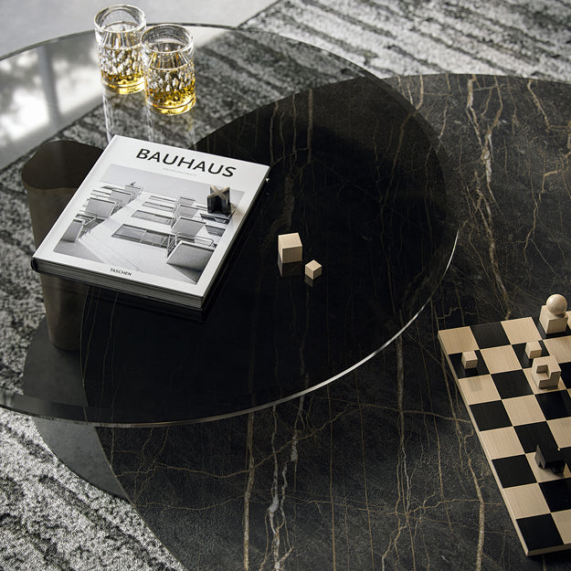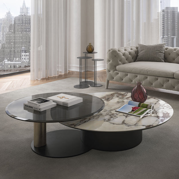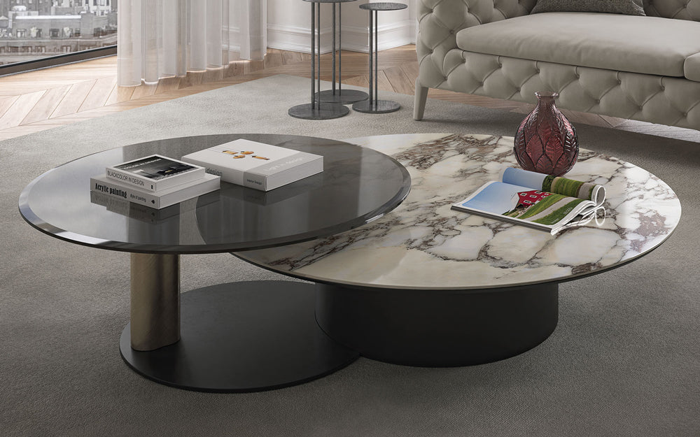 The Cattelan Italia Arena Keramik Bond Coffee Table Ø100/179x42h is a luxurious centerpiece that marries Italian craftsmanship with sculptural innovation. This stunning table features a rotating glass disc paired with a grand ceramic top, all supported by a solid architectural base. Perfectly blending elegance and engineering, it creates a dynamic focal point in any contemporary interior.