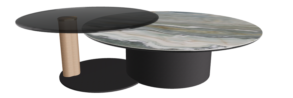 - Rotating Glass Disc: Adds motion and versatility to the design, ideal for dynamic, multifunctional living spaces.