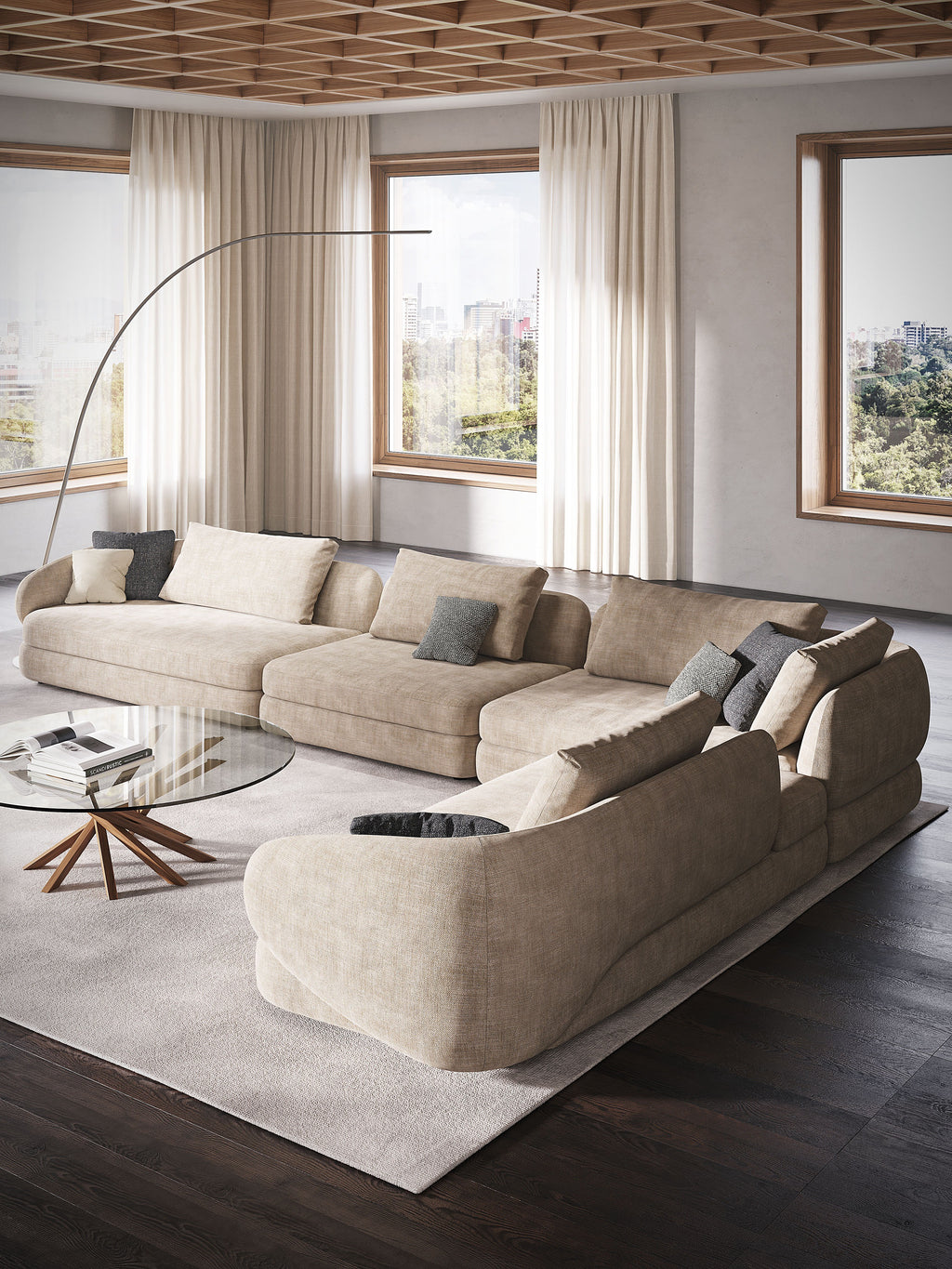 - Italian-crafted modular sofa with sweeping curves and enveloping comfort