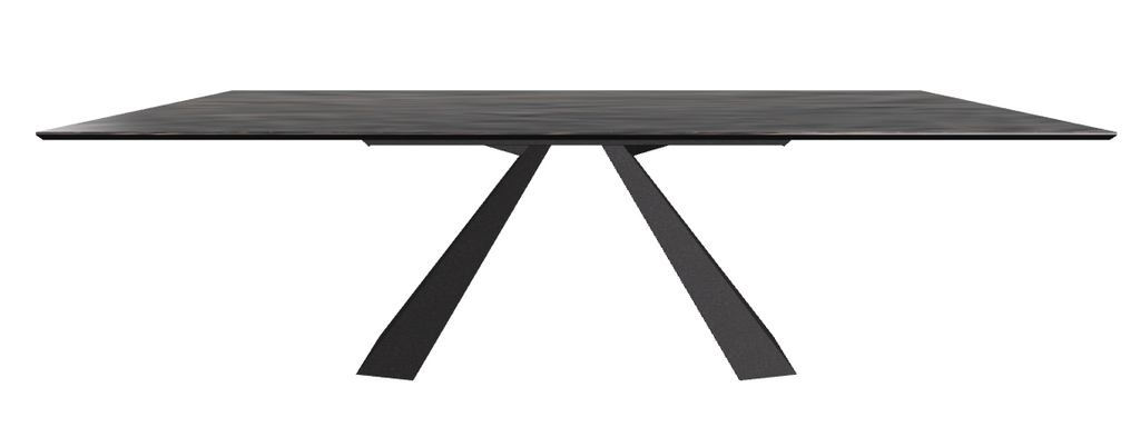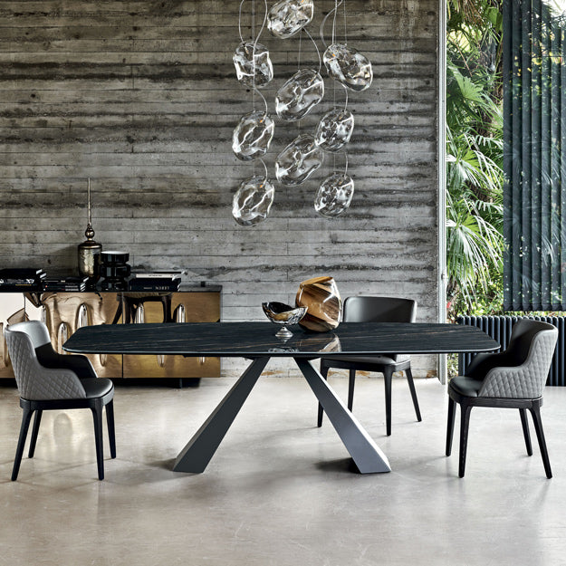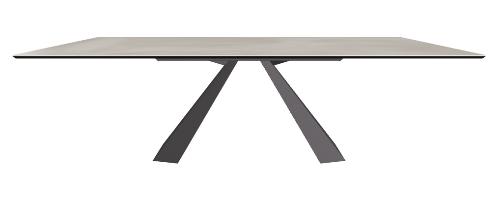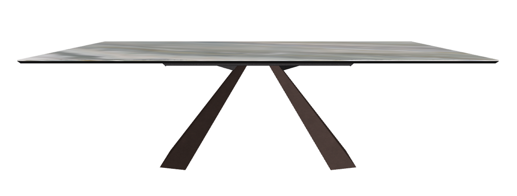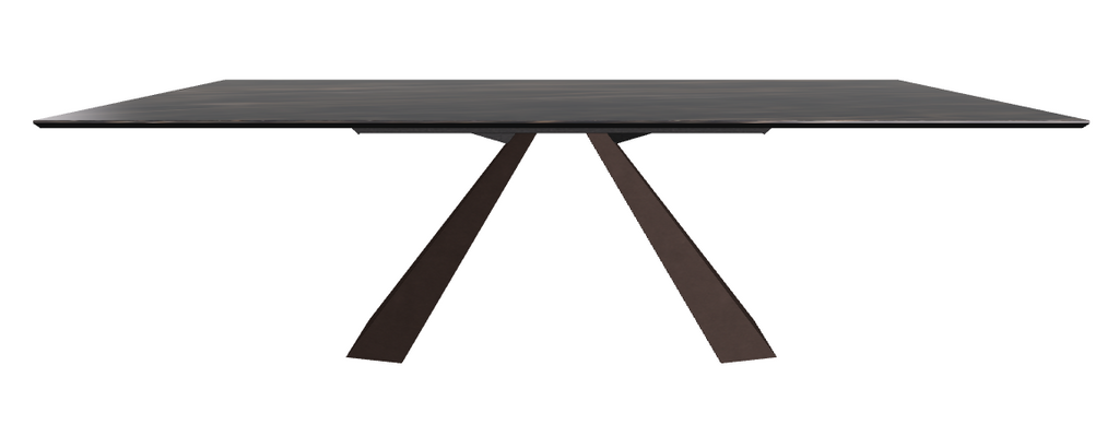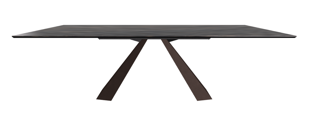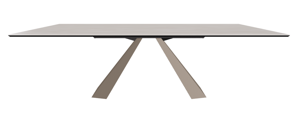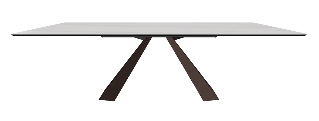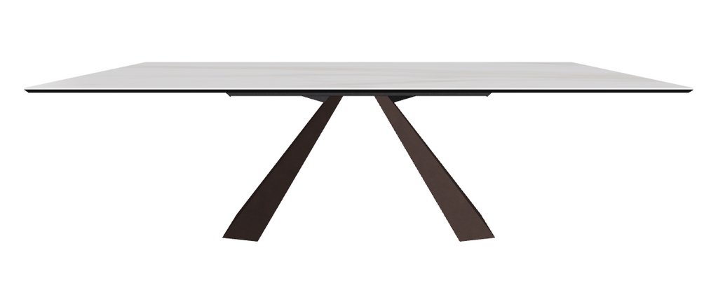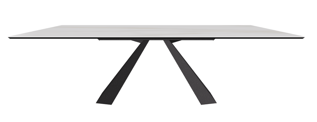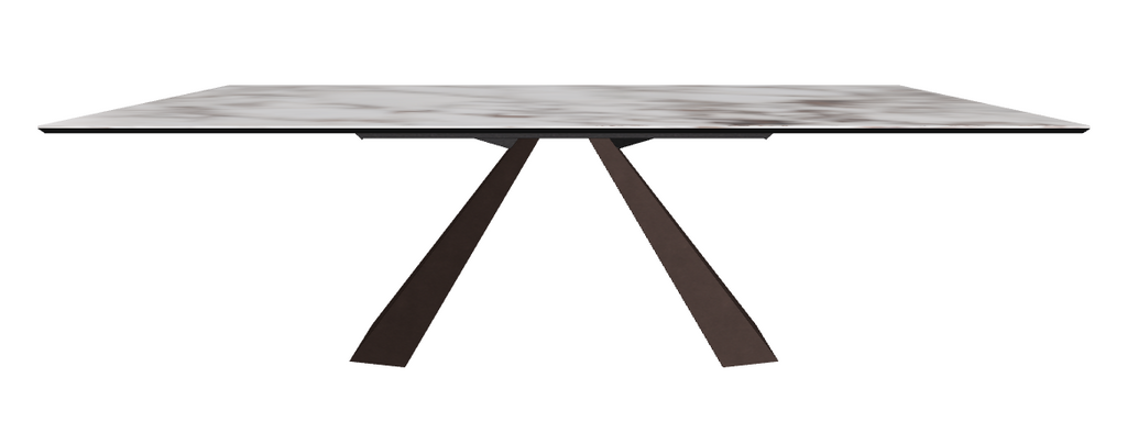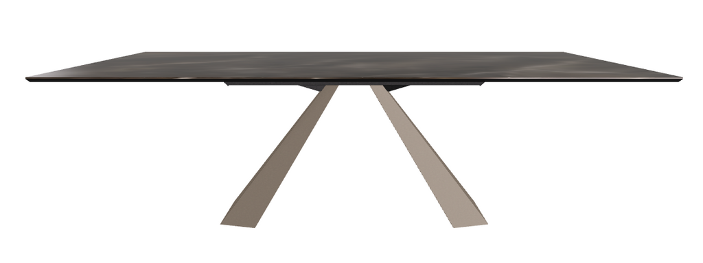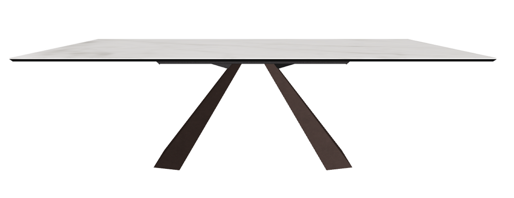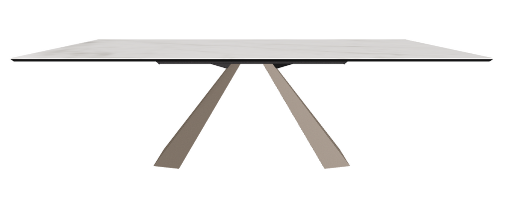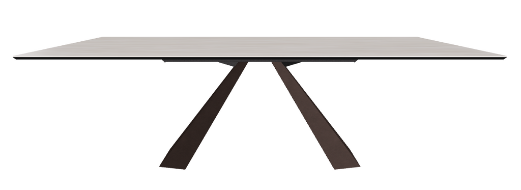 The Cattelan Italia Eliot Keramik Rectangular Dining Table is a striking example of modern Italian design, combining minimalist architectural lines with luxurious materials. Its sleek ceramic top—permanently bonded to glass for enhanced strength—is available in an array of sophisticated Italian finishes, including Alabastro marble, metallics, and stone-inspired surfaces, all offering exceptional resistance to scratches, heat, and stains. Subtle chamfered edges enhance the tactile appeal of the 12mm thick surface, which is also hygienic and easy to maintain. The table comes in two generous sizes, 240x120cm and 300x120cm, seating up to 10 or 12 guests comfortably. Below, the angled steel base is offered in refined embossed finishes such as Bronze, Titanium, Black, and Graphite, delivering both bold visual impact and practical legroom. With base widths of 123cm (240cm model) and 176cm (300cm model), the Eliot Keramik balances elegance and stability perfectly. Every aspect—from its seamless joinery to handcrafted Italian precision—reflects Cattelan Italia’s commitment to creating enduring, functional works of art for contemporary living.