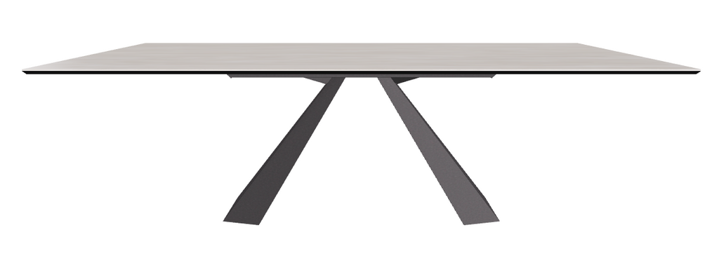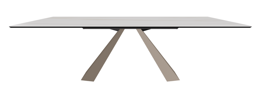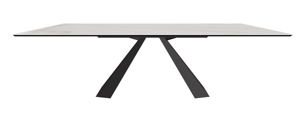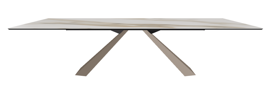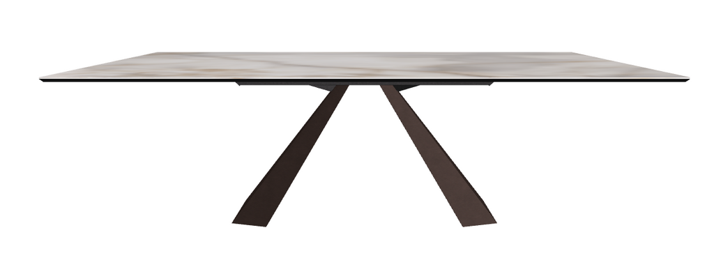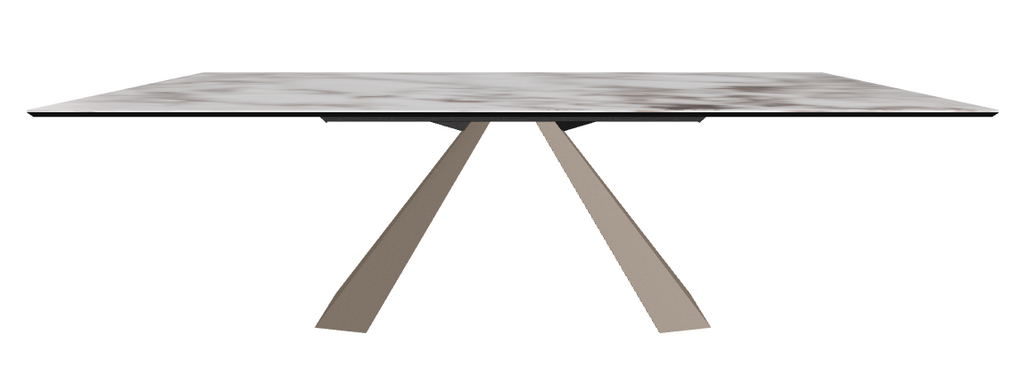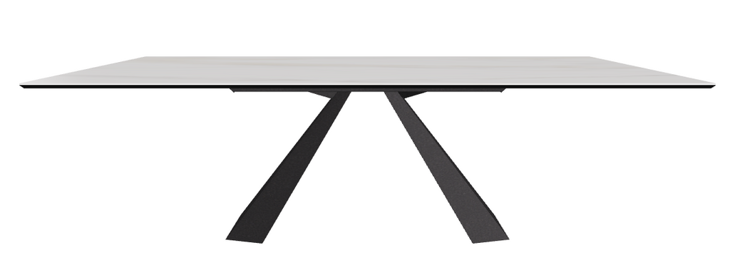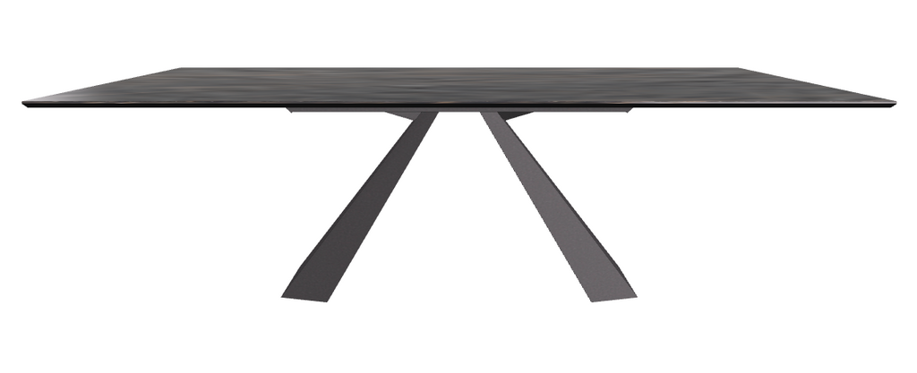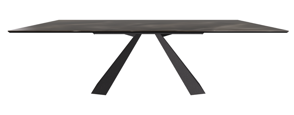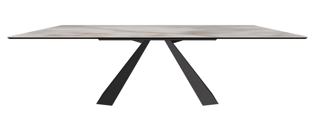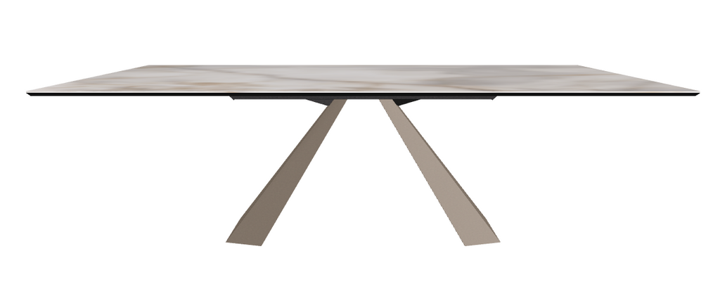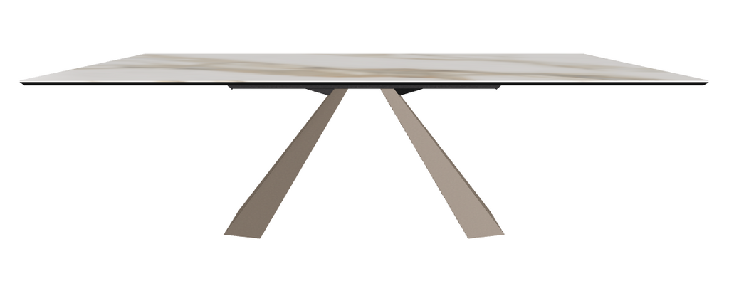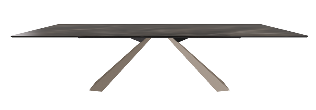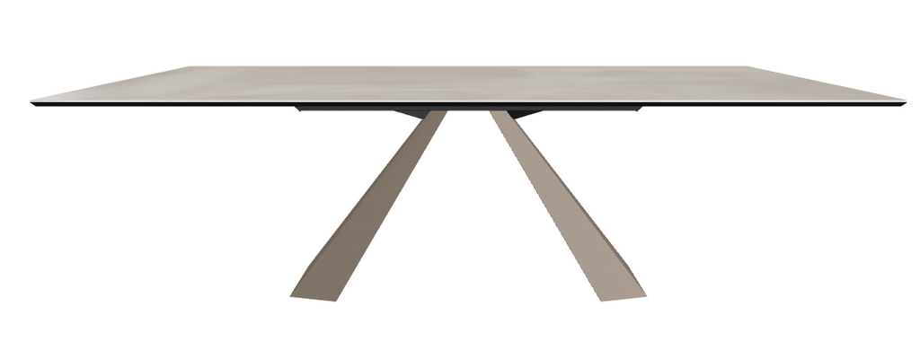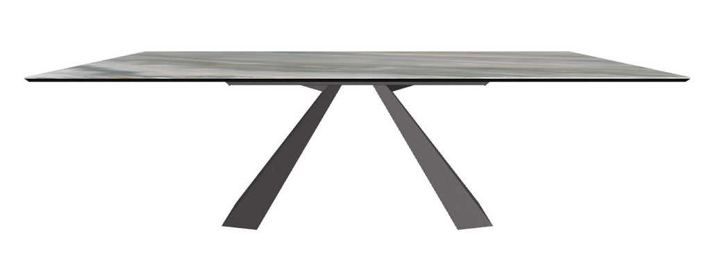 The Cattelan Italia Eliot Keramik Rectangular Dining Table is a striking example of modern Italian design, combining minimalist architectural lines with luxurious materials. Its sleek ceramic top—permanently bonded to glass for enhanced strength—is available in an array of sophisticated Italian finishes, including Alabastro marble, metallics, and stone-inspired surfaces, all offering exceptional resistance to scratches, heat, and stains. Subtle chamfered edges enhance the tactile appeal of the 12mm thick surface, which is also hygienic and easy to maintain. The table comes in two generous sizes, 240x120cm and 300x120cm, seating up to 10 or 12 guests comfortably. Below, the angled steel base is offered in refined embossed finishes such as Bronze, Titanium, Black, and Graphite, delivering both bold visual impact and practical legroom. With base widths of 123cm (240cm model) and 176cm (300cm model), the Eliot Keramik balances elegance and stability perfectly. Every aspect—from its seamless joinery to handcrafted Italian precision—reflects Cattelan Italia’s commitment to creating enduring, functional works of art for contemporary living.