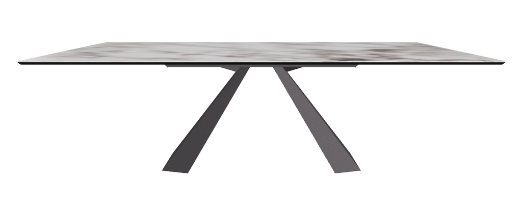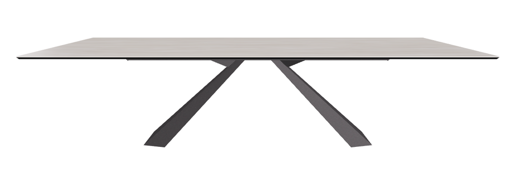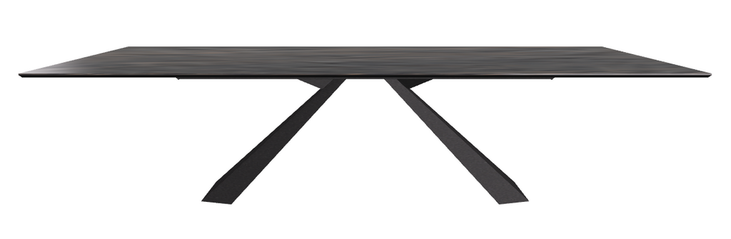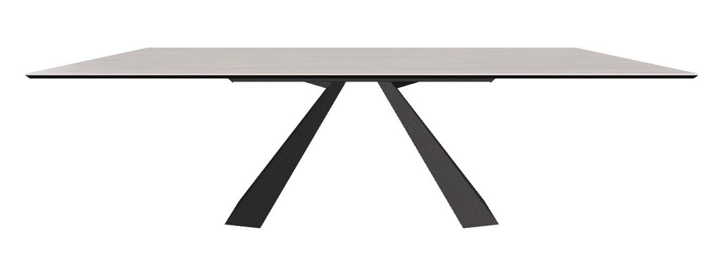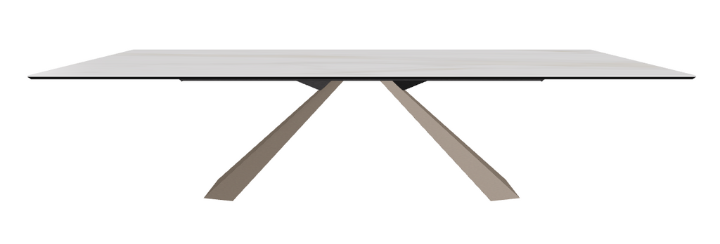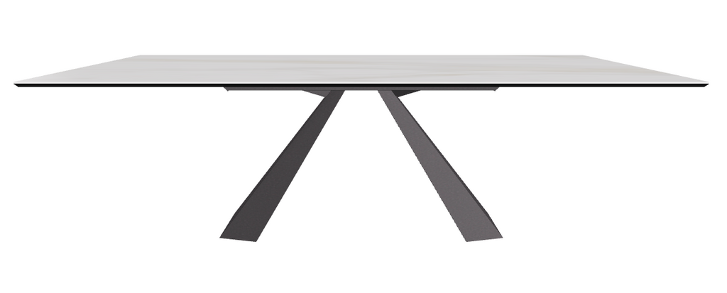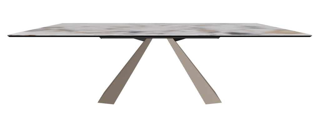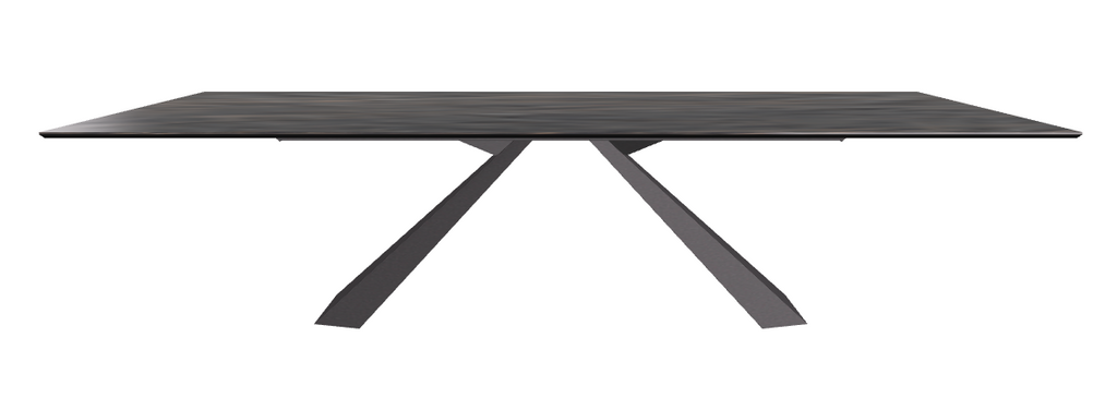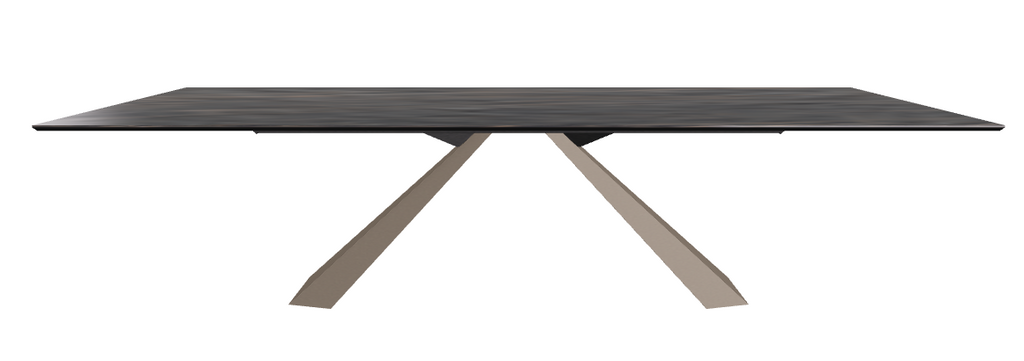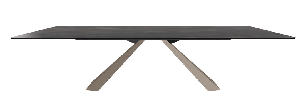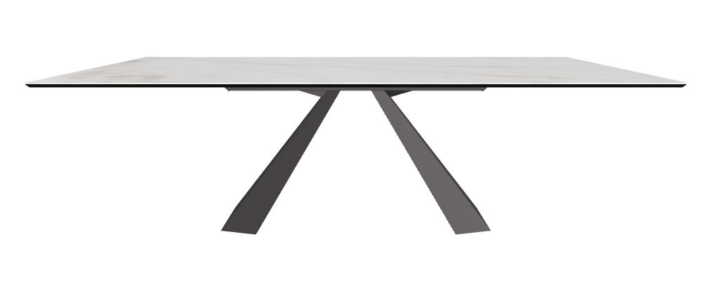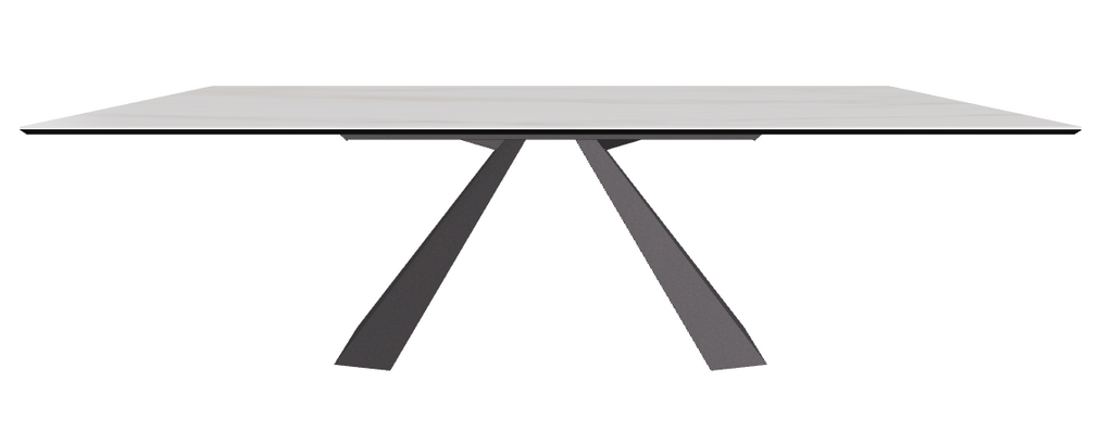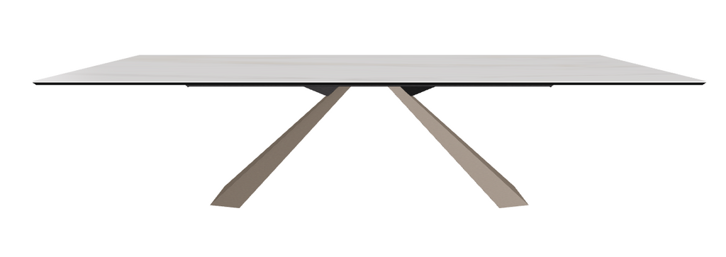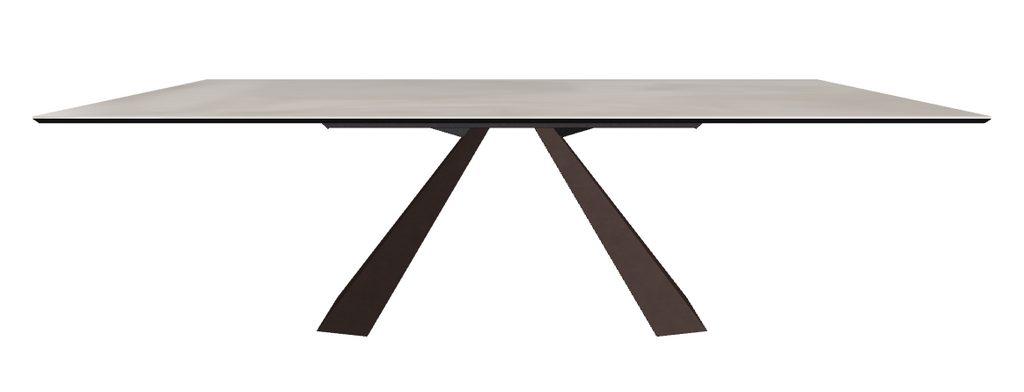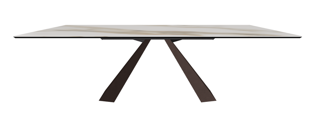The Cattelan Italia Eliot Keramik Rectangular Dining Table is a striking example of modern Italian design, combining minimalist architectural lines with luxurious materials. Its sleek ceramic top—permanently bonded to glass for enhanced strength—is available in an array of sophisticated Italian finishes, including Alabastro marble, metallics, and stone-inspired surfaces, all offering exceptional resistance to scratches, heat, and stains. Subtle chamfered edges enhance the tactile appeal of the 12mm thick surface, which is also hygienic and easy to maintain. The table comes in two generous sizes, 240x120cm and 300x120cm, seating up to 10 or 12 guests comfortably. Below, the angled steel base is offered in refined embossed finishes such as Bronze, Titanium, Black, and Graphite, delivering both bold visual impact and practical legroom. With base widths of 123cm (240cm model) and 176cm (300cm model), the Eliot Keramik balances elegance and stability perfectly. Every aspect—from its seamless joinery to handcrafted Italian precision—reflects Cattelan Italia’s commitment to creating enduring, functional works of art for contemporary living.