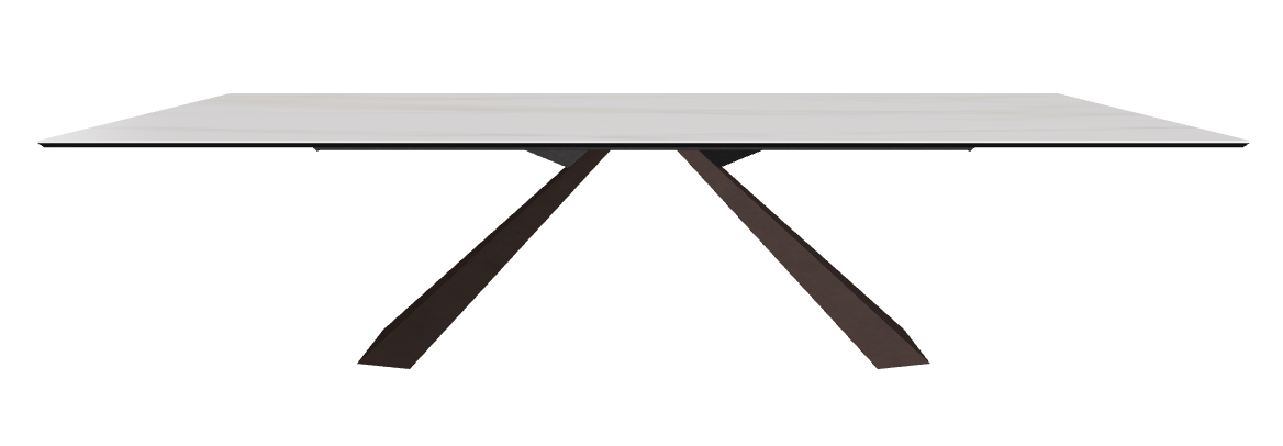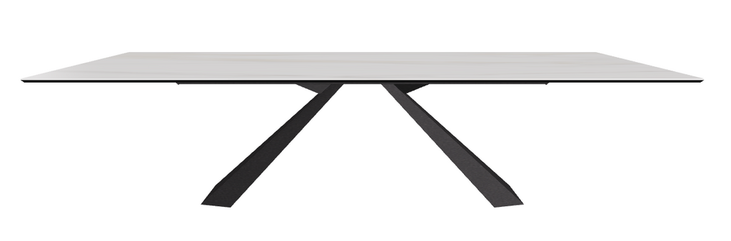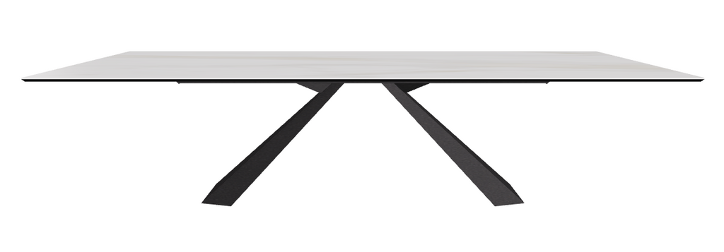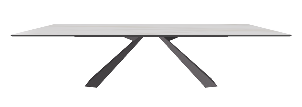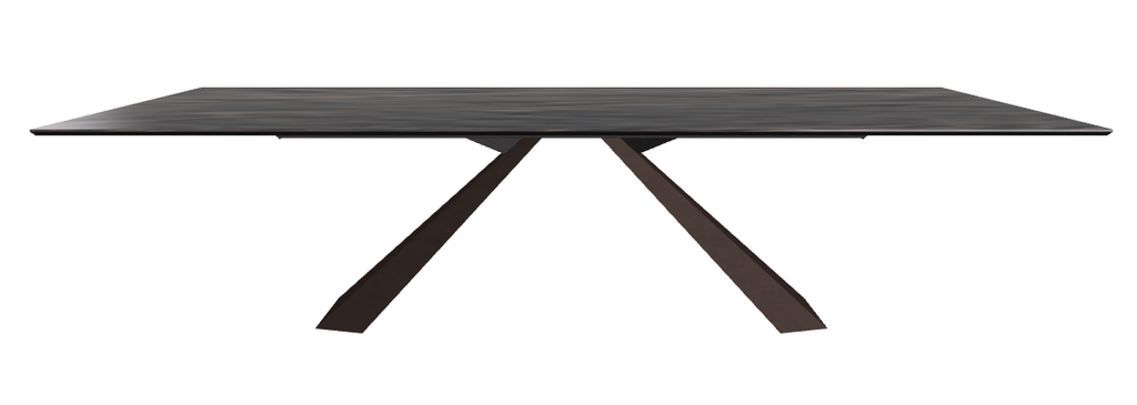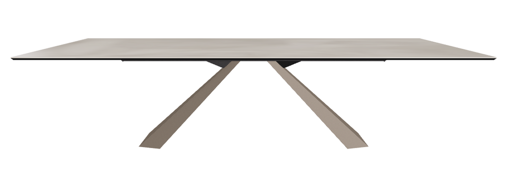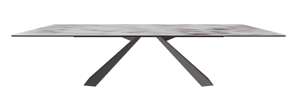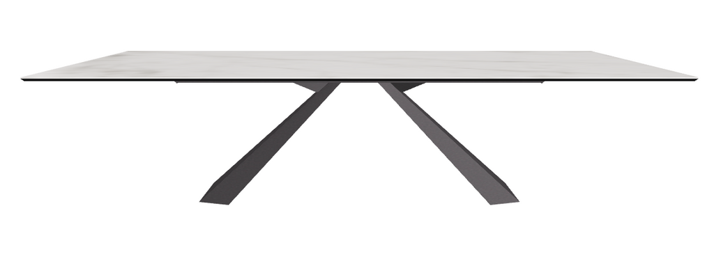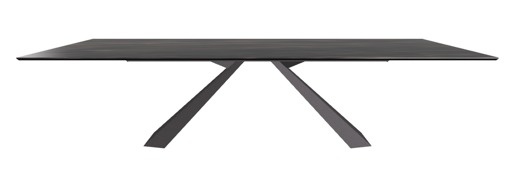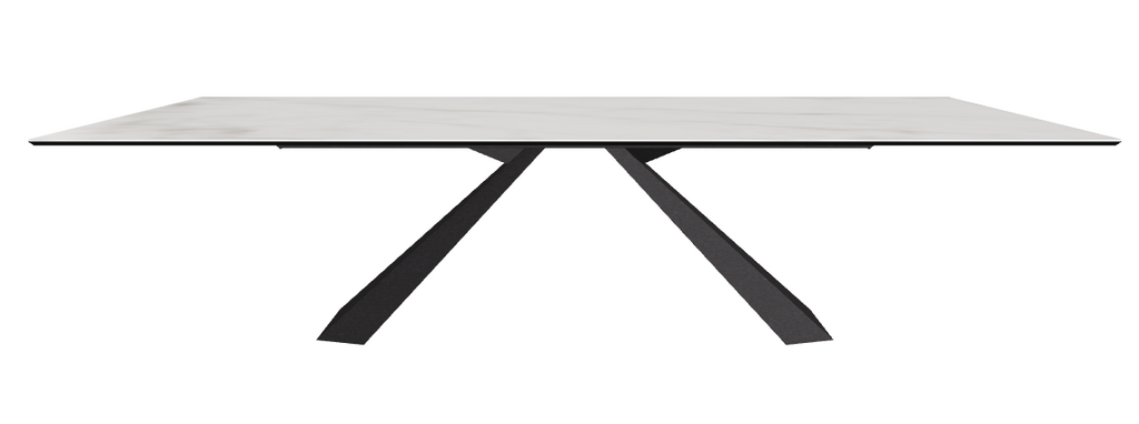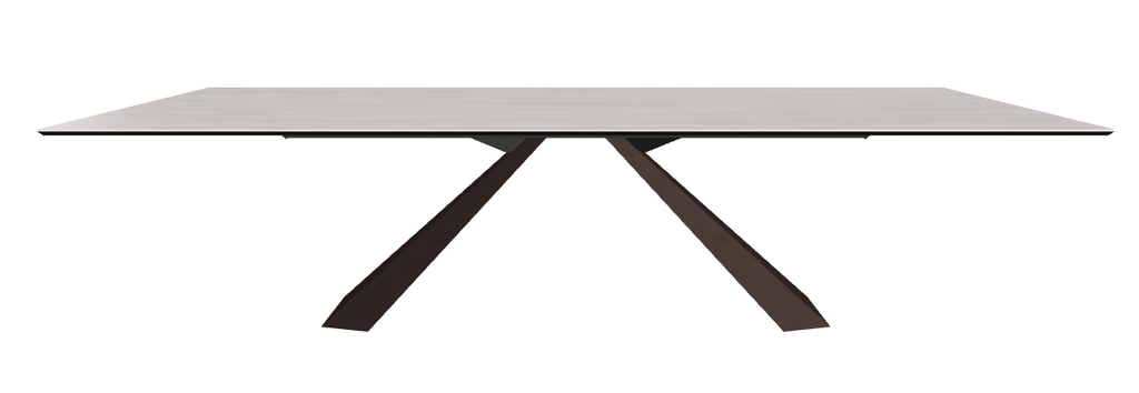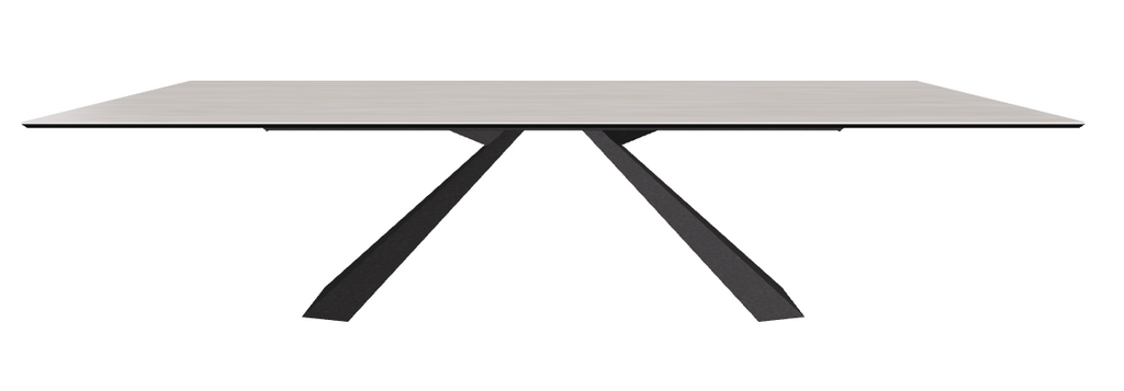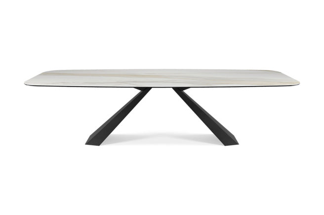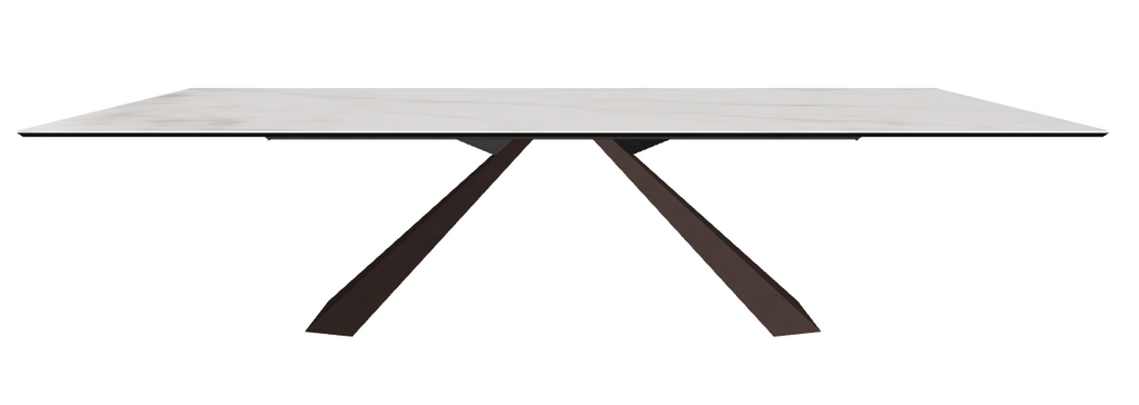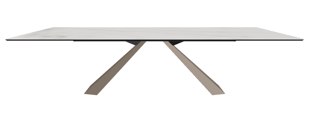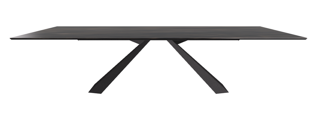 The Cattelan Italia Eliot Keramik Rectangular Dining Table is a striking example of modern Italian design, combining minimalist architectural lines with luxurious materials. Its sleek ceramic top—permanently bonded to glass for enhanced strength—is available in an array of sophisticated Italian finishes, including Alabastro marble, metallics, and stone-inspired surfaces, all offering exceptional resistance to scratches, heat, and stains. Subtle chamfered edges enhance the tactile appeal of the 12mm thick surface, which is also hygienic and easy to maintain. The table comes in two generous sizes, 240x120cm and 300x120cm, seating up to 10 or 12 guests comfortably. Below, the angled steel base is offered in refined embossed finishes such as Bronze, Titanium, Black, and Graphite, delivering both bold visual impact and practical legroom. With base widths of 123cm (240cm model) and 176cm (300cm model), the Eliot Keramik balances elegance and stability perfectly. Every aspect—from its seamless joinery to handcrafted Italian precision—reflects Cattelan Italia’s commitment to creating enduring, functional works of art for contemporary living.