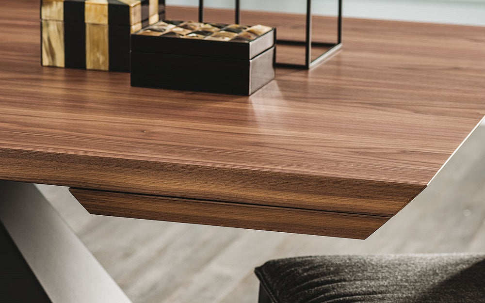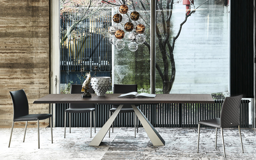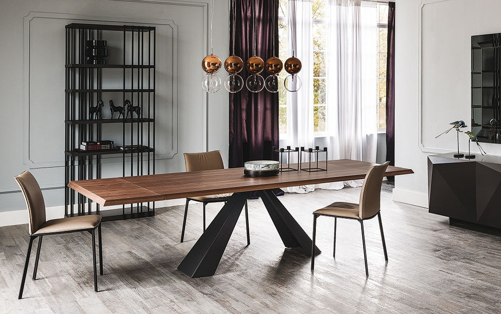 The Cattelan Italia Eliot Wood Drive Dining Table brings together the tactile authenticity of solid wood with the engineering brilliance of Italian extendible design. A contemporary icon, it features a stunning live-edged top in Canaletto Walnut or Burned Oak—each plank selected for its natural grain and beauty—paired with Cattelan Italia’s signature sculptural Eliot base in a range of luxurious metal finishes. The Eliot Wood Drive’s effortless extension mechanism enables a seamless transition from everyday dining to entertaining larger groups, with concealed leaves that glide out in seconds and remain perfectly aligned. Available in five sizes, this table offers both generous proportions and versatility, transforming any dining room into a refined centrepiece of warmth, elegance, and modern innovation. Handcrafted in Italy to the highest standards, the Eliot Wood Drive is a true statement of enduring quality, versatility, and Italian artistry.