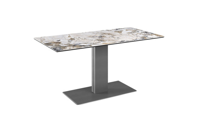 The Cattelan Italia Elvis Keramik Rectangular Dining Table represents the perfect evolution of contemporary minimalist design, seamlessly blending the timeless Elvis collection's essential stylistic imprint with the luxurious durability of premium ceramic surfaces. Introduced in 2015, this sophisticated piece elevates the modern dining room with its clean geometric lines and refined material composition. The rectangular ceramic top, available in three carefully proportioned sizes, showcases stunning marble-effect finishes that deliver the visual impact of natural stone with superior resistance to scratches, stains, and daily wear. The distinctive central steel pedestal base, featuring a sleek cylindrical column and rectangular foundation, provides exceptional stability while maintaining the table's signature minimalist aesthetic. Available in sophisticated finishes including polished stainless steel, titanium embossed, and graphite embossed lacquered steel, this table seamlessly integrates into any contemporary interior. Whether accommodating intimate family meals or hosting elegant dinner parties for up to six guests, the Elvis Keramik Rectangular combines Italian craftsmanship excellence with practical functionality, making it an ideal centerpiece for modern living spaces that value both style and substance.