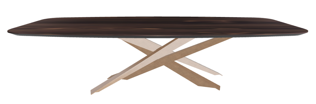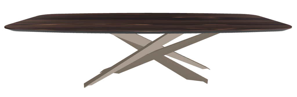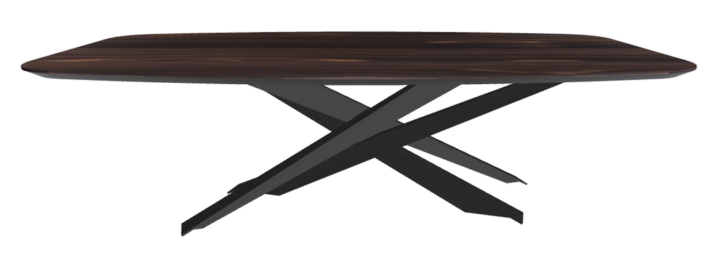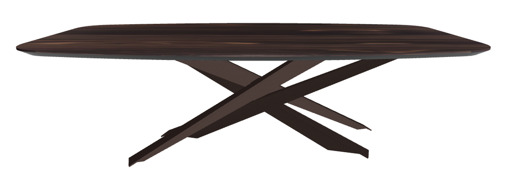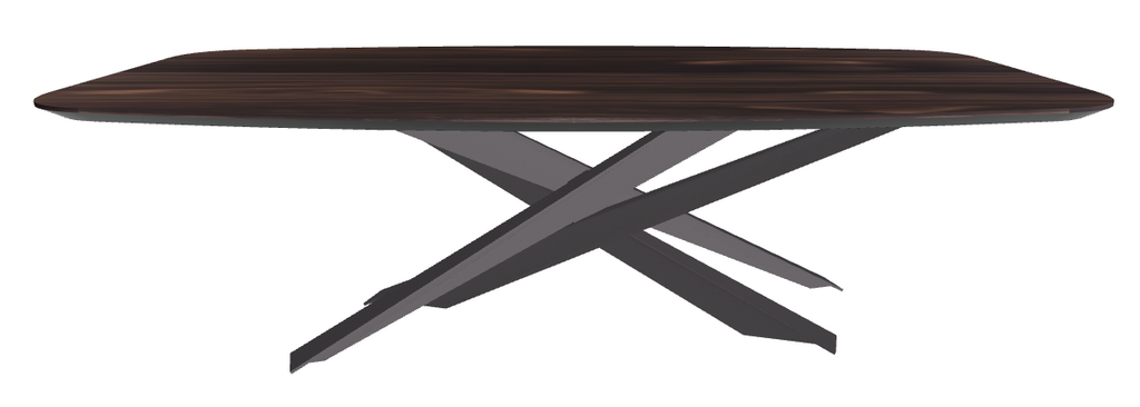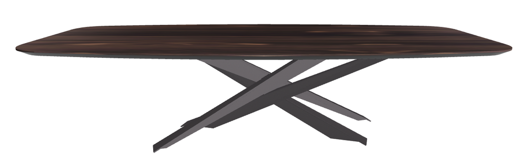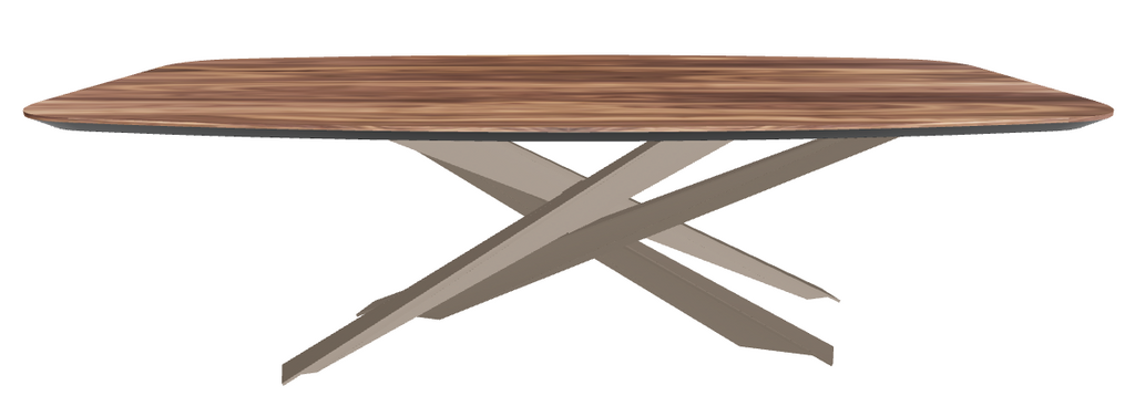 The Cattelan Italia Lancer Wood Barrel-Shaped Dining Table blends the warmth of solid wood with the bold geometry of the Lancer’s interlaced steel base. The softly curved barrel top optimizes sightlines and circulation, while a precise edge profile and subtly tapered ends give the piece a light, contemporary stance. Offered in Canaletto Walnut or Burned Oak, the top highlights natural grain movement and tonal depth; the architectural base—available in seven refined metal finishes—anchors the table with sculptural presence. Purpose-built for generous dining, it comfortably seats 10–12 while keeping the footprint elegant and balanced.