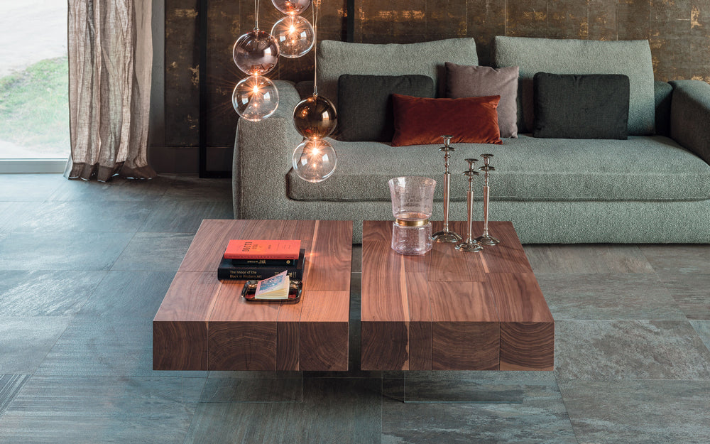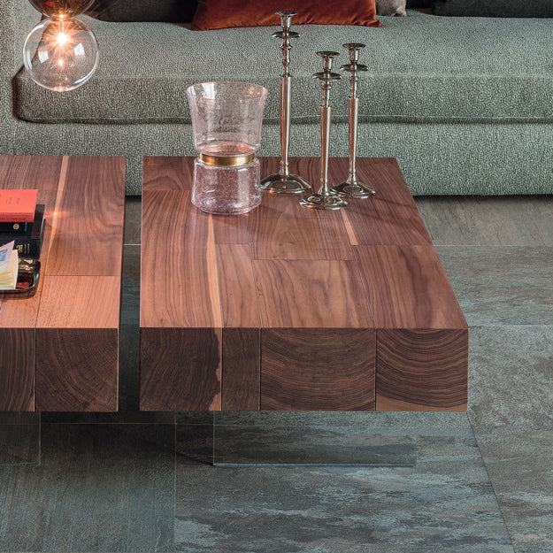 The Cattelan Italia Lingotto Coffee Table is a refined fusion of natural warmth and modern transparency. Featuring a striking Canaletto Walnut top resting elegantly on a pair of minimalist transparent methacrylate bases, the Lingotto brings airy sophistication to contemporary living spaces. Available in two heights, it works beautifully in front of sofas or as an understated centrepiece in a stylish lounge.