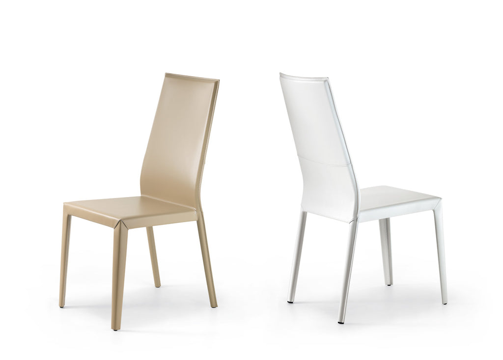 The Margot Chair – High Back by Cattelan Italia is an elegant Italian upholstered chair featuring a minimalist silhouette and a taller, supportive backrest for enhanced ergonomics and presence. This high back version (45 × 59 × 100 cm) offers an increased sense of verticality and comfort, making it an ideal choice for formal dining, boardrooms, or refined lounge spaces. Upholstered entirely in premium leather with refined stitching detail (standard or in contrast), the Margot High Back embodies lasting comfort and timeless Italian style.