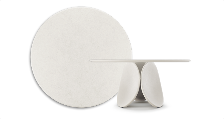 The Cattelan Italia Maxim Argile Dining Table showcases an elegant fusion of organic texture and bold geometric design. This statement dining table features a circular top handcrafted in Argile clay — an innovative, eco-friendly mineral-based finish that brings a velvety tactile feel and natural depth of colour. Its sculptural conical base provides striking visual balance and excellent stability, while offering comfortable legroom for all seated guests. Available in three generous diameters, the Maxim Argile seats 6–8 guests, making it perfect for both intimate family dinners and large gatherings. Each table is meticulously crafted in Italy, reflecting Cattelan Italia’s commitment to modern design and artisanal excellence.