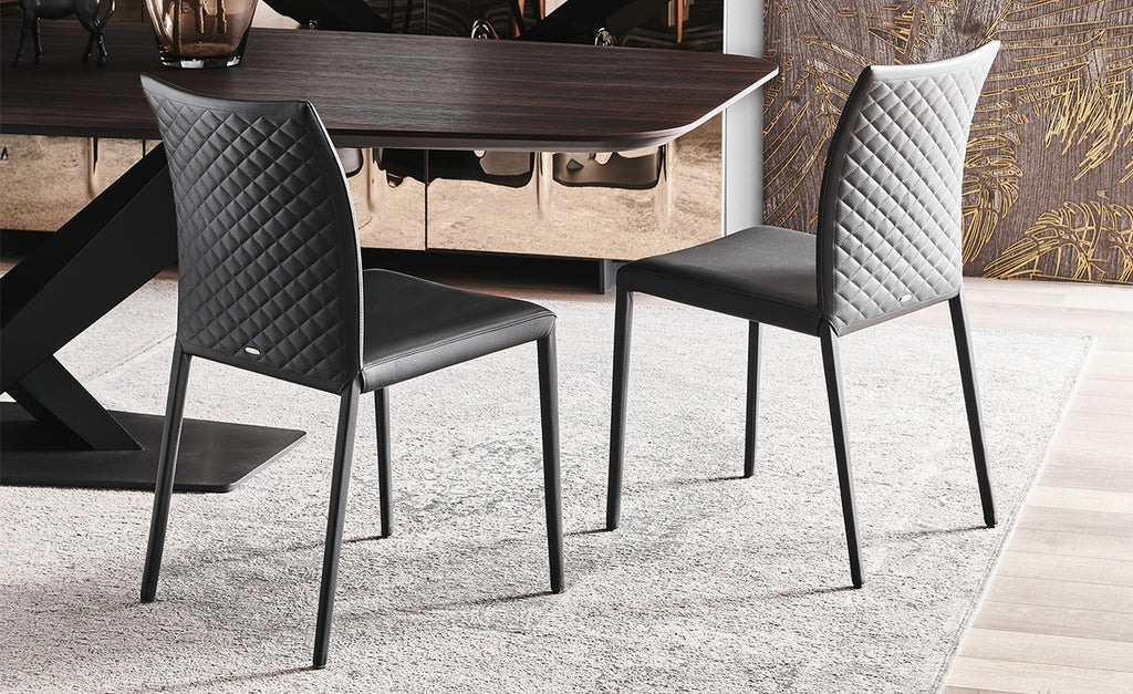 The Norma Couture Chair by Cattelan Italia represents the pinnacle of the versatile Norma family, featuring glamorous diamond-shaped quilting on the backrest that elevates its sophisticated design. This upholstered chair combines the collection's signature minimal aesthetic with luxurious couture detailing, offering the greatest number of available variants to meet diverse stylistic needs. The entirely upholstered base uses the same precious materials as the seat, creating a seamless, elegant appearance that adapts beautifully to various interior design requirements.