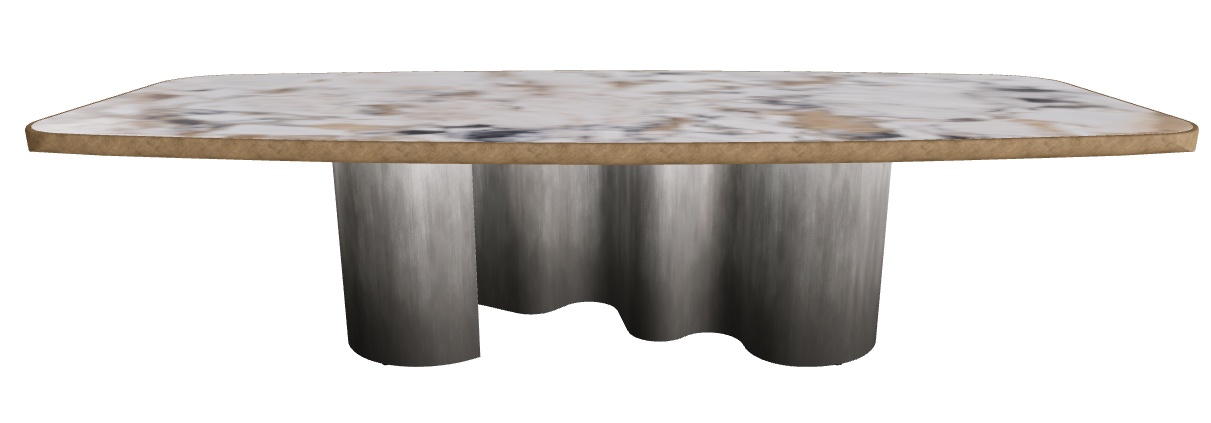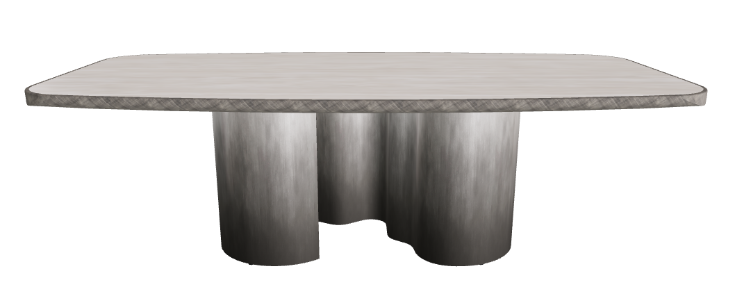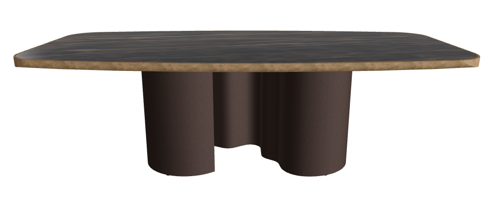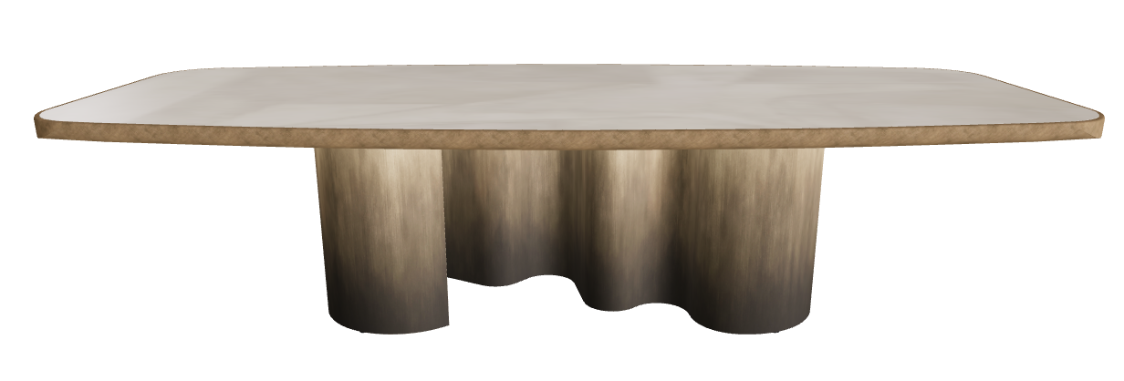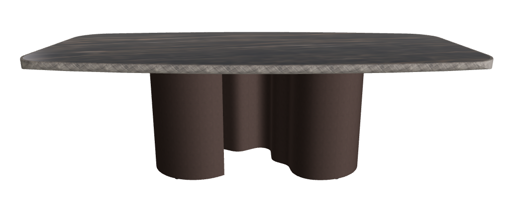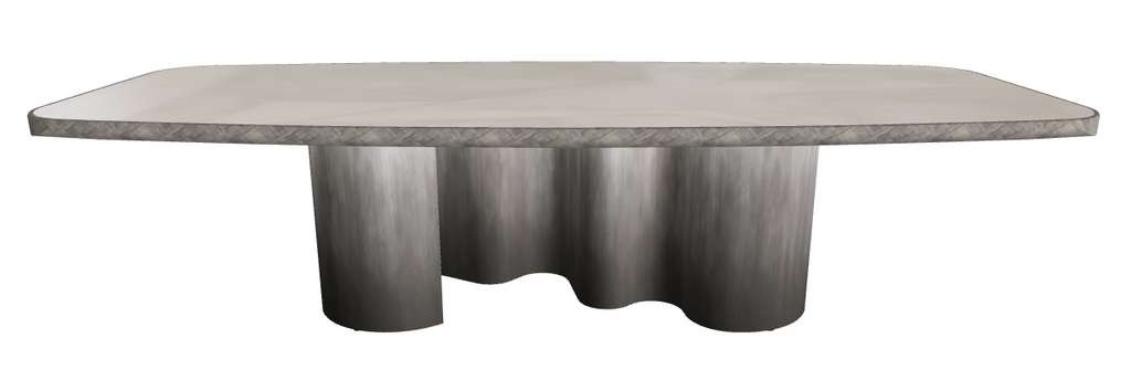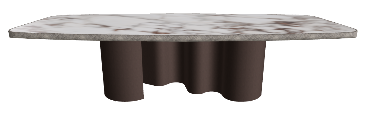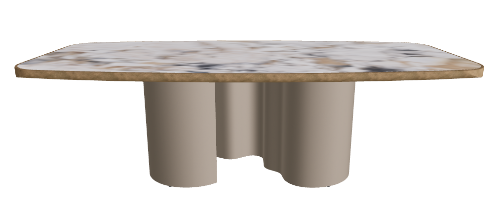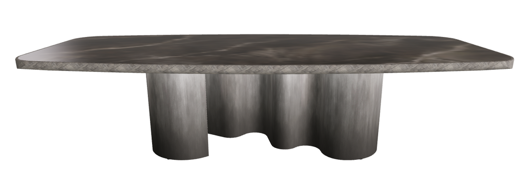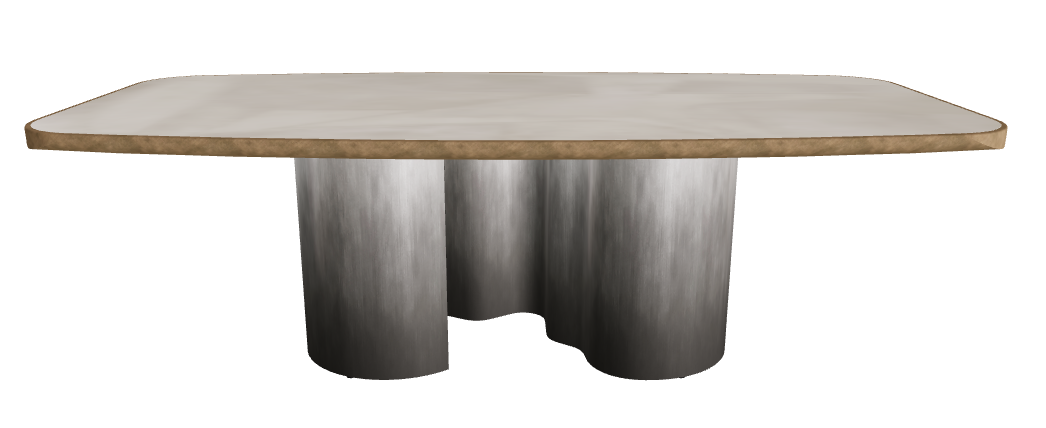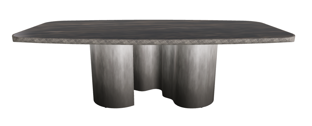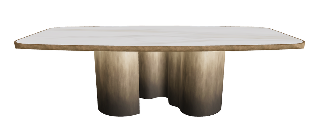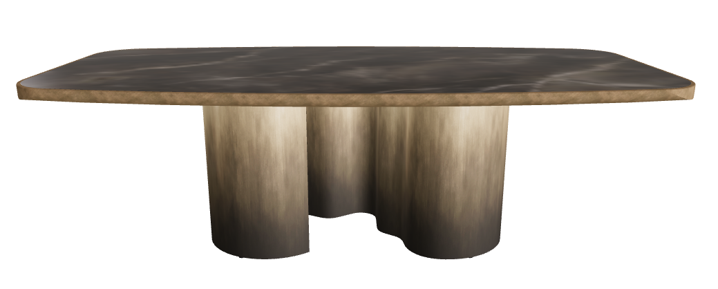 Premium Ceramic Top: Barrel-shaped surface available in 240×120 or 300×128 cm format, edged with real brushed metal for added character and refinement.