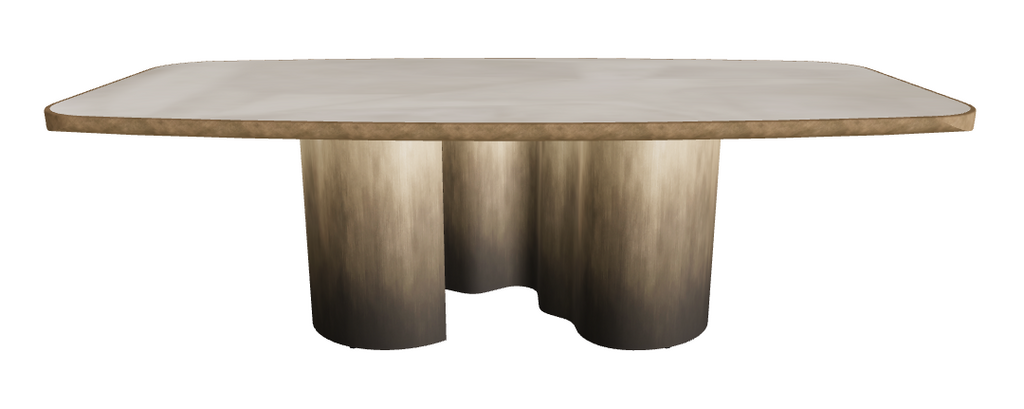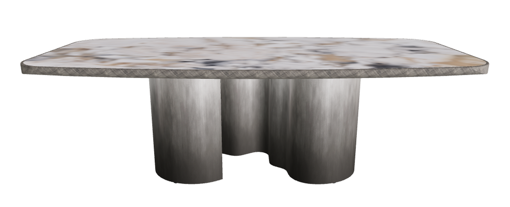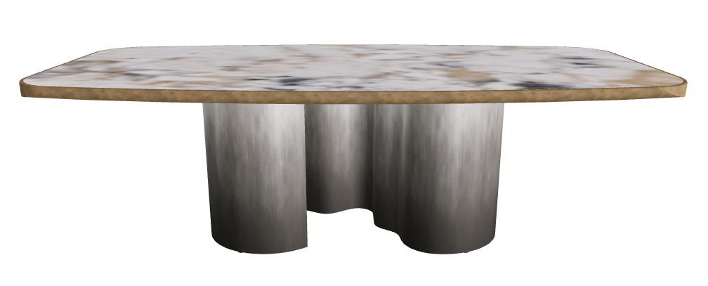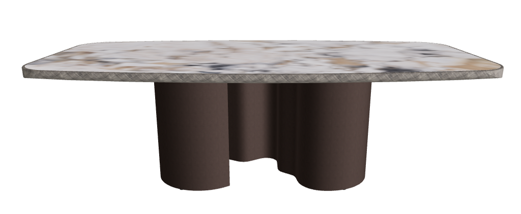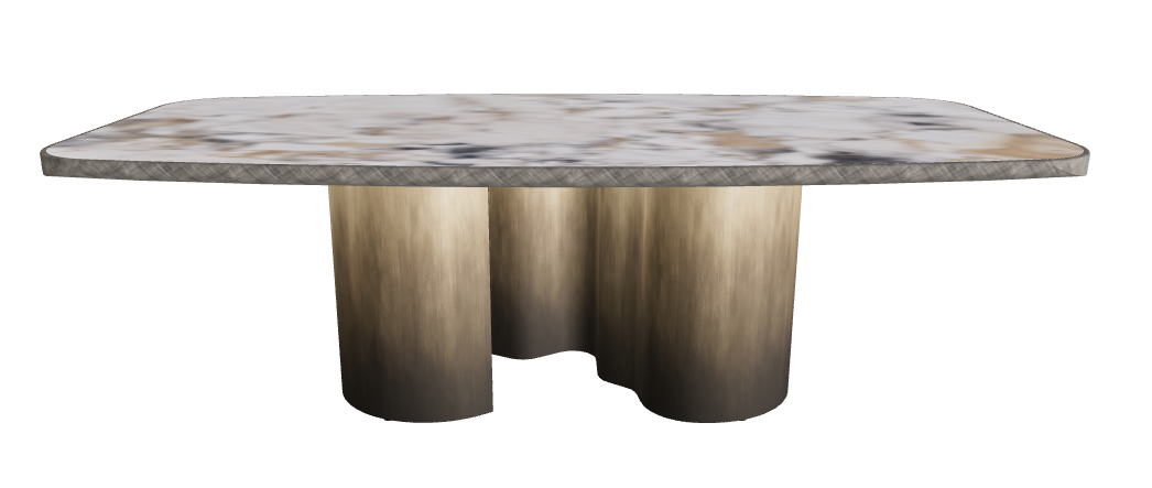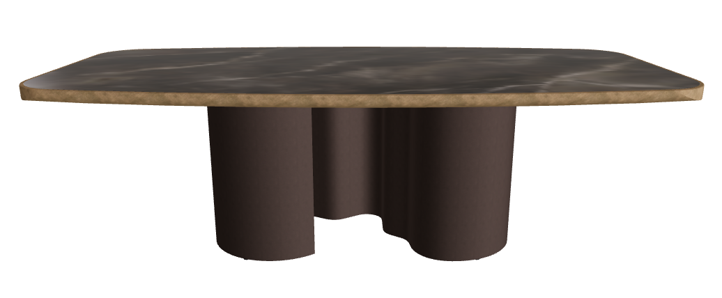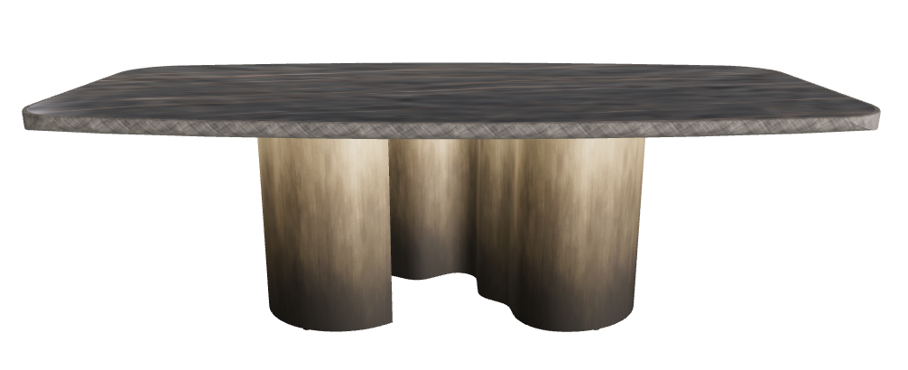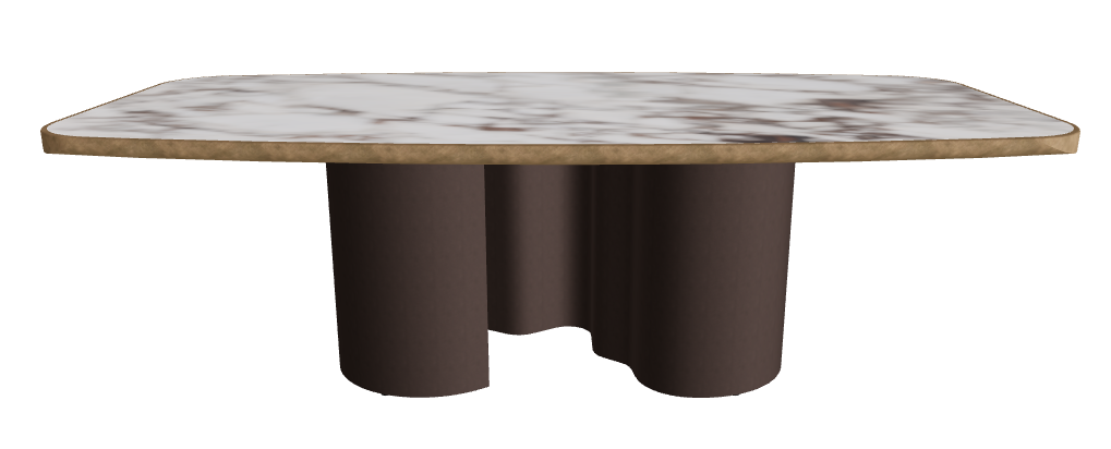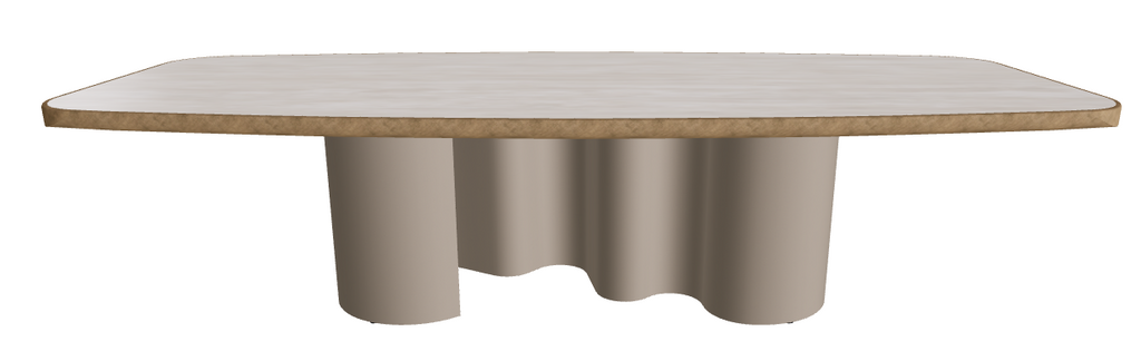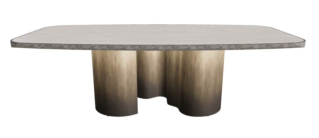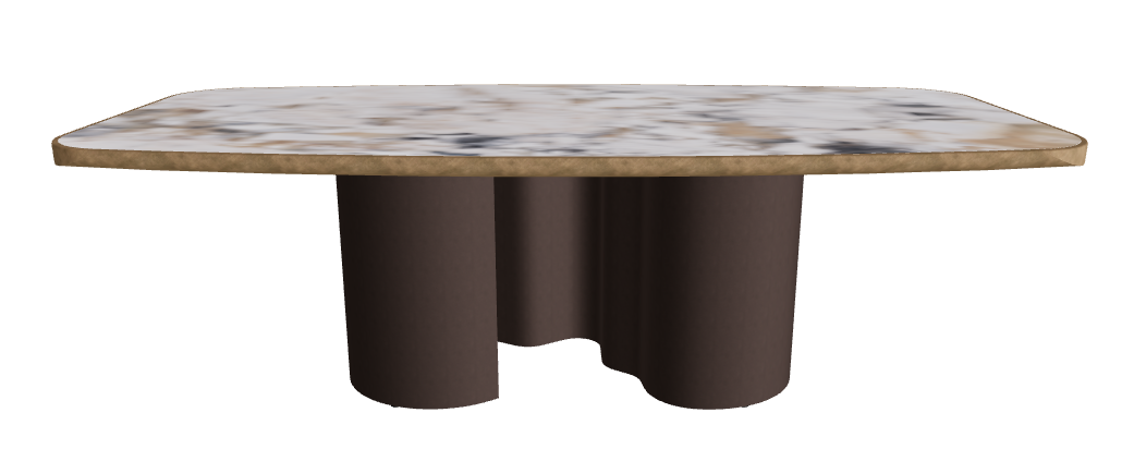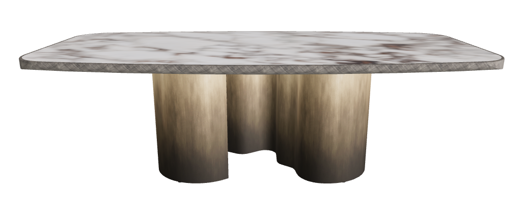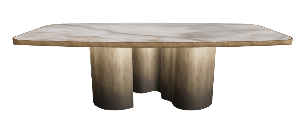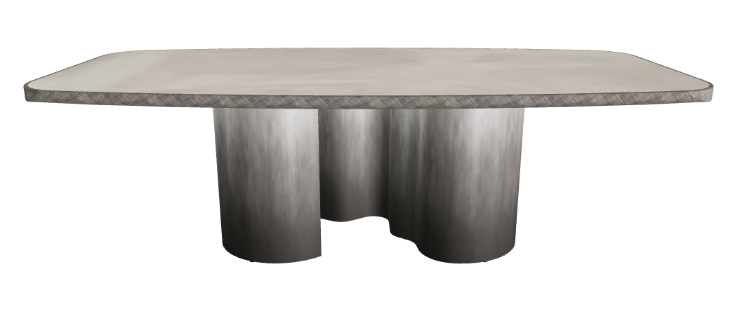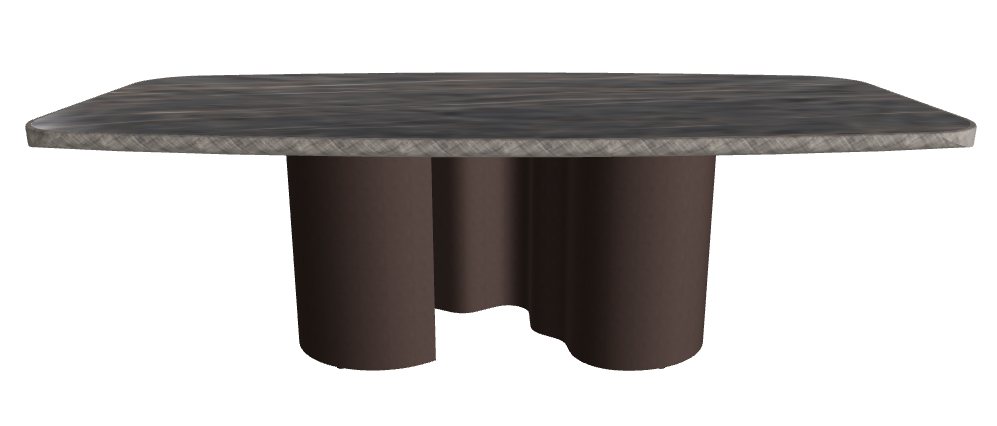 Premium Ceramic Top: Barrel-shaped surface available in 240×120 or 300×128 cm format, edged with real brushed metal for added character and refinement.