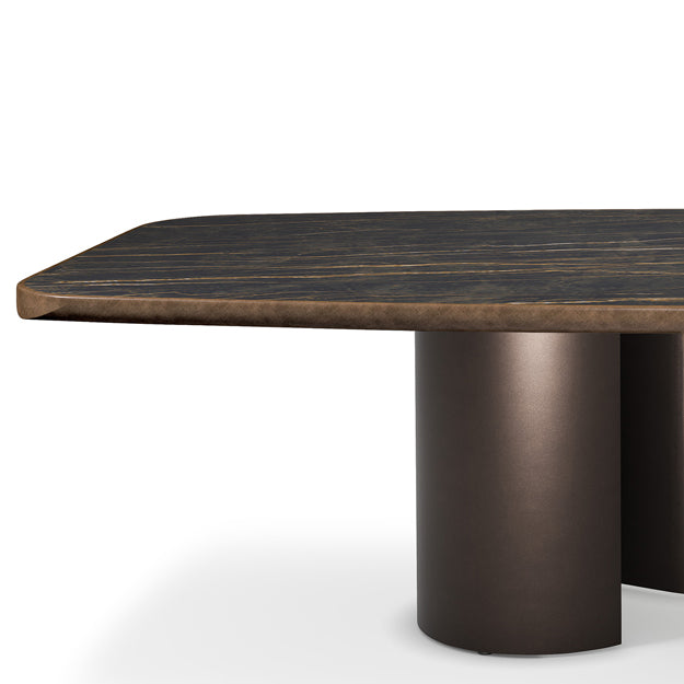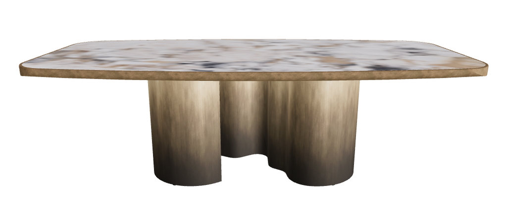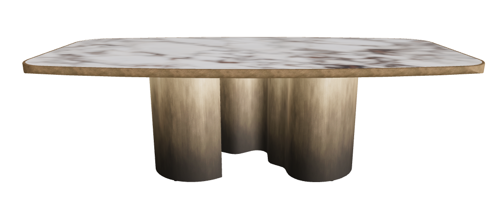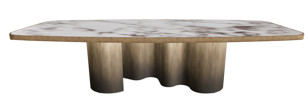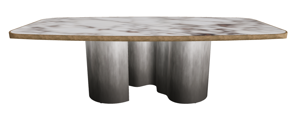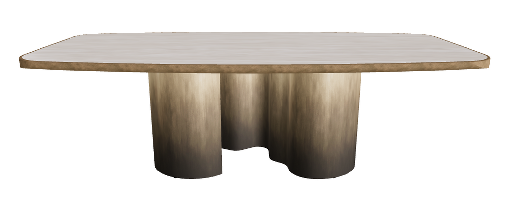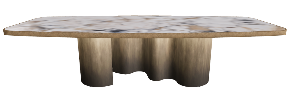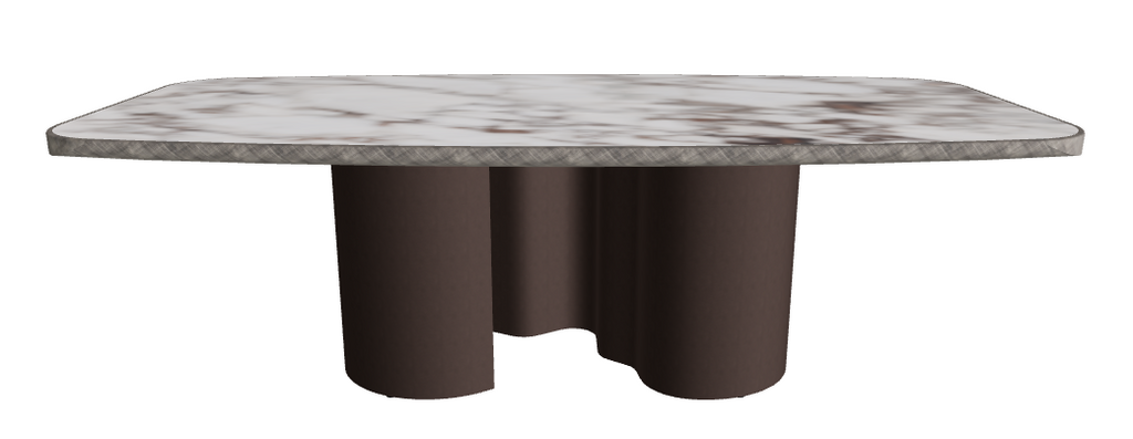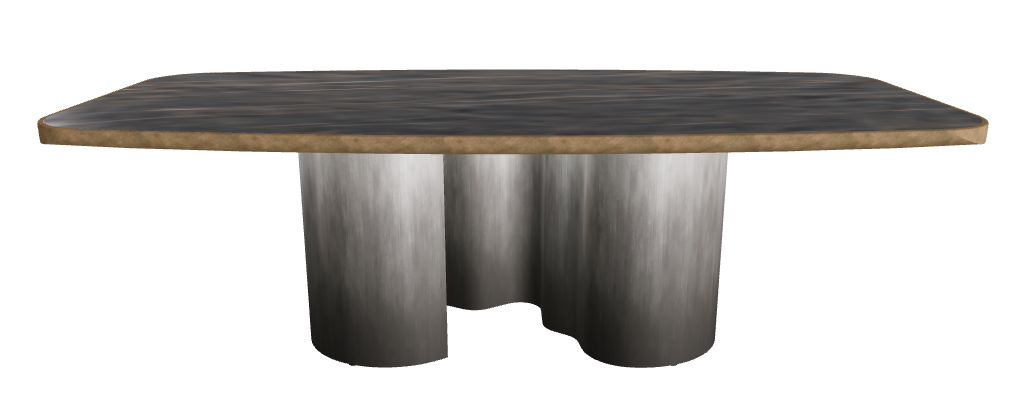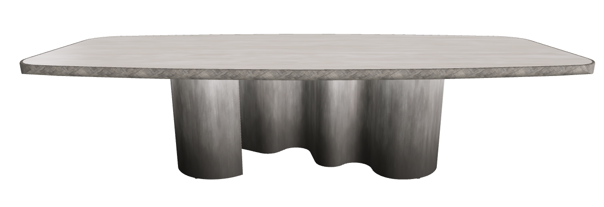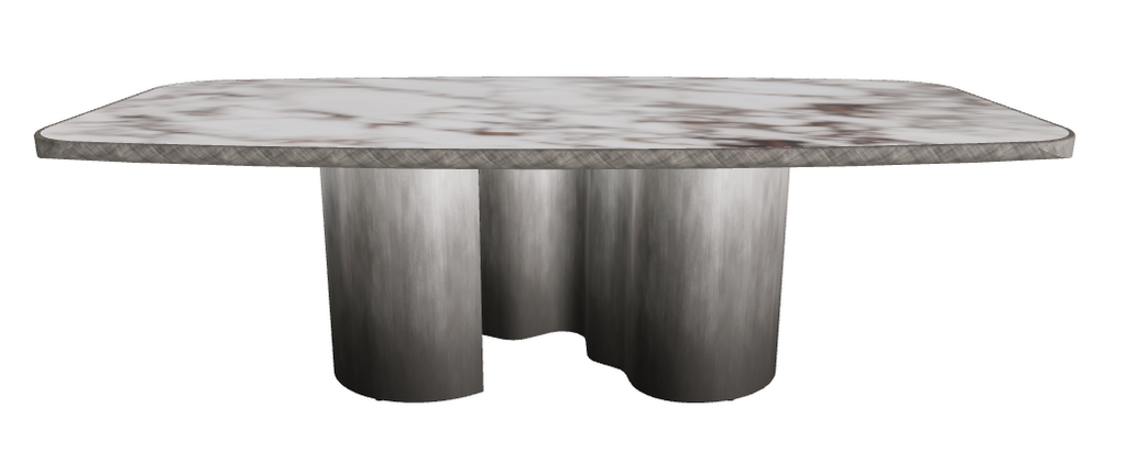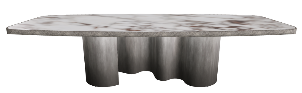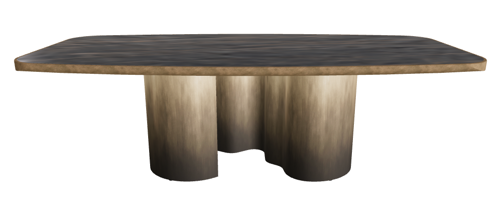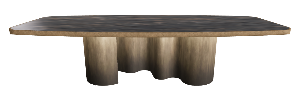 Premium Ceramic Top: Barrel-shaped surface available in 240×120 or 300×128 cm format, edged with real brushed metal for added character and refinement.