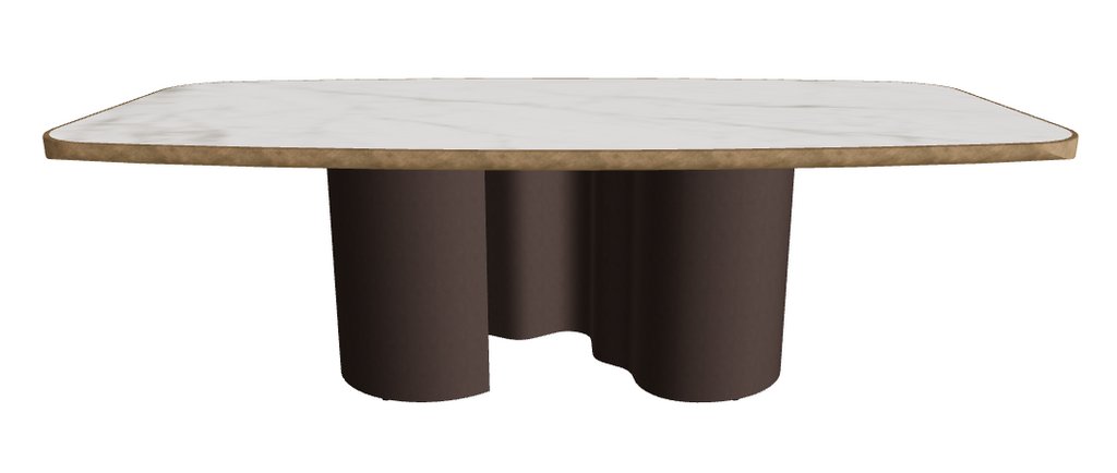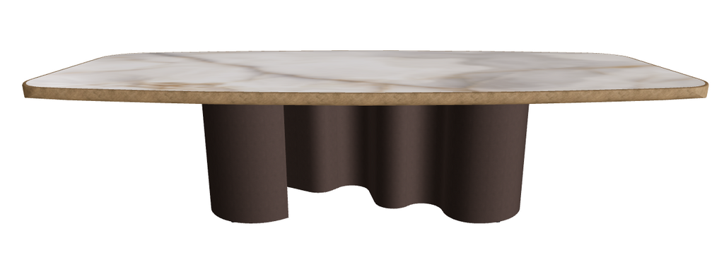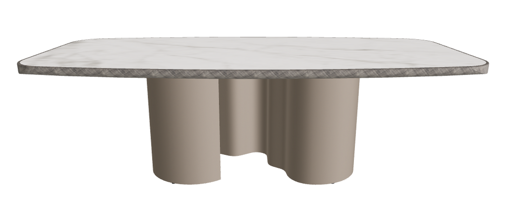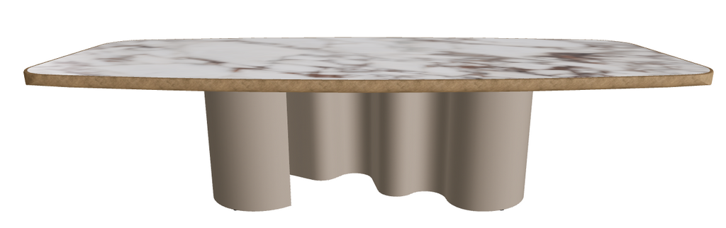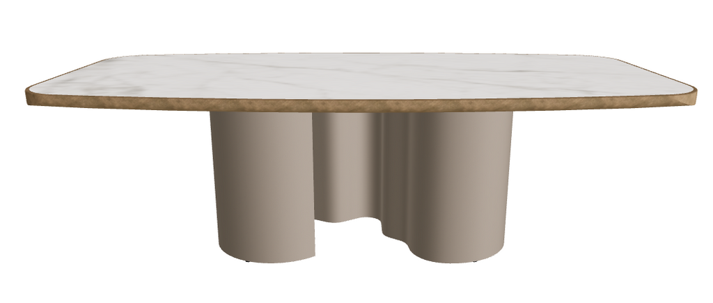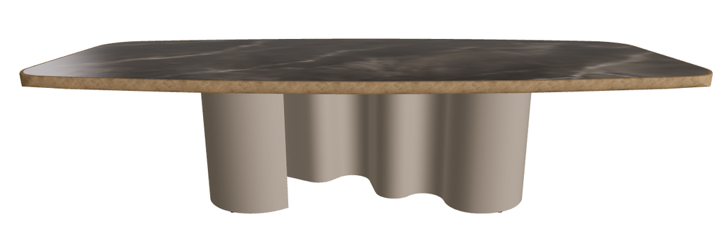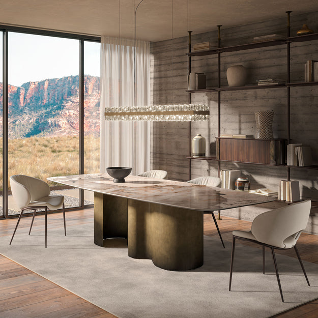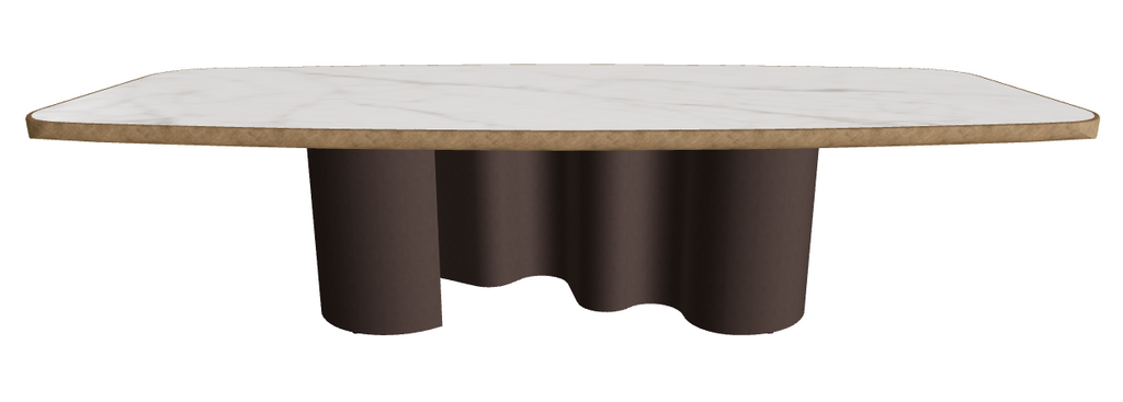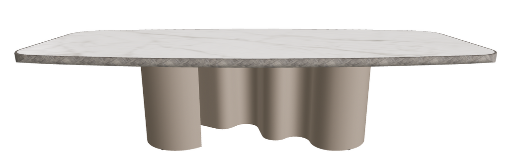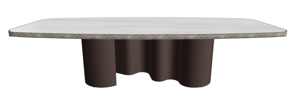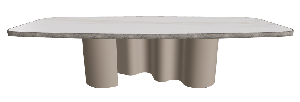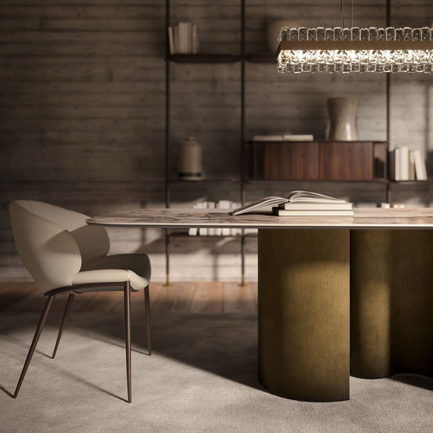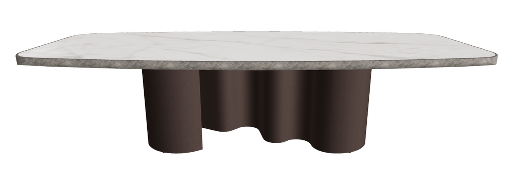 The Cattelan Italia Papel Keramik Premium Barrel-Shaped Dining Table reimagines sculptural dining design through an elegant interplay of material and form. With a gracefully curved ceramic surface and luxurious real metal edge, this premium edition elevates the iconic Papel silhouette to new heights. Whether you choose the 240×120 or 300×128 cm version, the Papel Premium is a striking centrepiece for dining rooms that seek refined drama and exceptional craftsmanship. The curved ceramic top is offered in an exquisite array of matte and glossy finishes that replicate the veining and elegance of natural stone, while the monolithic base reflects the folds of origami with its architectural strength. A brushed edge in Brushed Bronze or Brushed Grey surrounds the top, adding depth and richness to its presentation. Designed to comfortably seat 10 to 12 guests, this is Italian design at its most commanding and graceful.