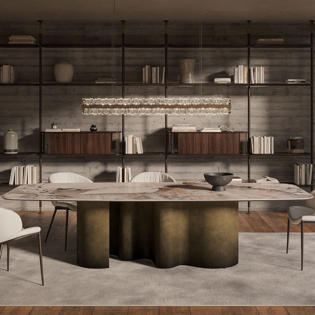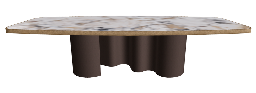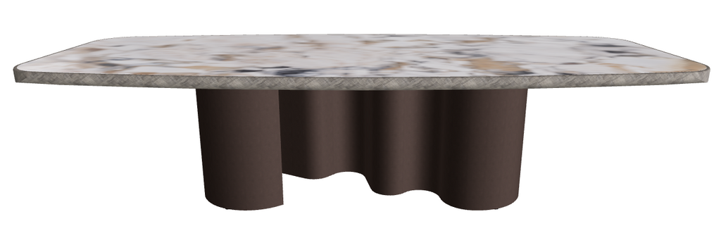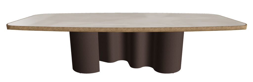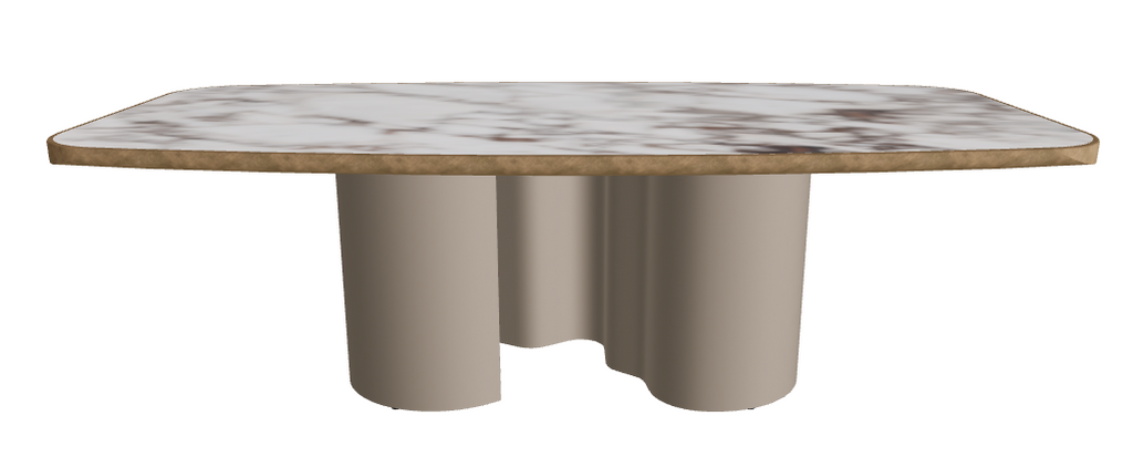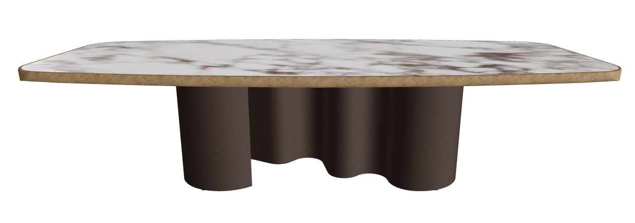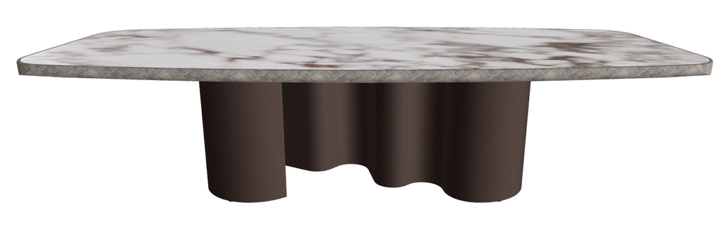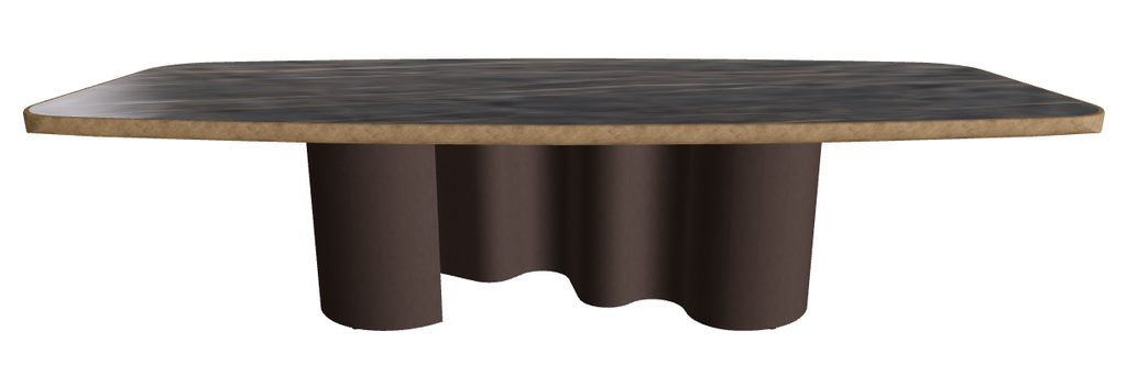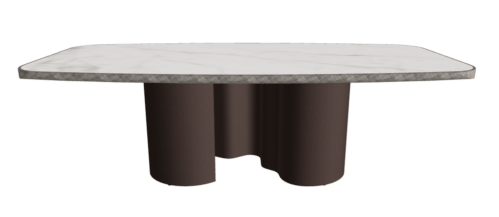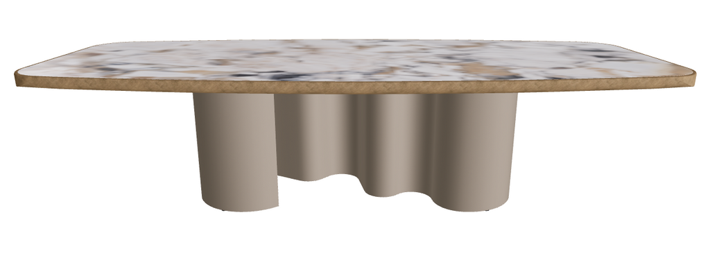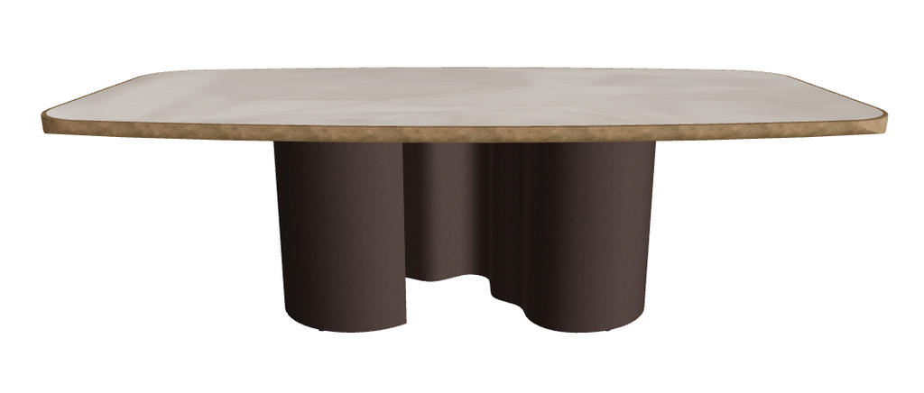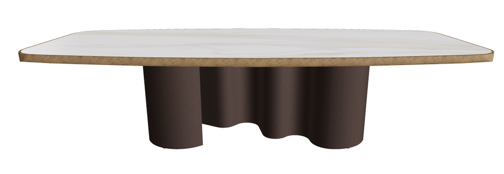 The Cattelan Italia Papel Keramik Premium Barrel-Shaped Dining Table reimagines sculptural dining design through an elegant interplay of material and form. With a gracefully curved ceramic surface and luxurious real metal edge, this premium edition elevates the iconic Papel silhouette to new heights. Whether you choose the 240×120 or 300×128 cm version, the Papel Premium is a striking centrepiece for dining rooms that seek refined drama and exceptional craftsmanship. The curved ceramic top is offered in an exquisite array of matte and glossy finishes that replicate the veining and elegance of natural stone, while the monolithic base reflects the folds of origami with its architectural strength. A brushed edge in Brushed Bronze or Brushed Grey surrounds the top, adding depth and richness to its presentation. Designed to comfortably seat 10 to 12 guests, this is Italian design at its most commanding and graceful.