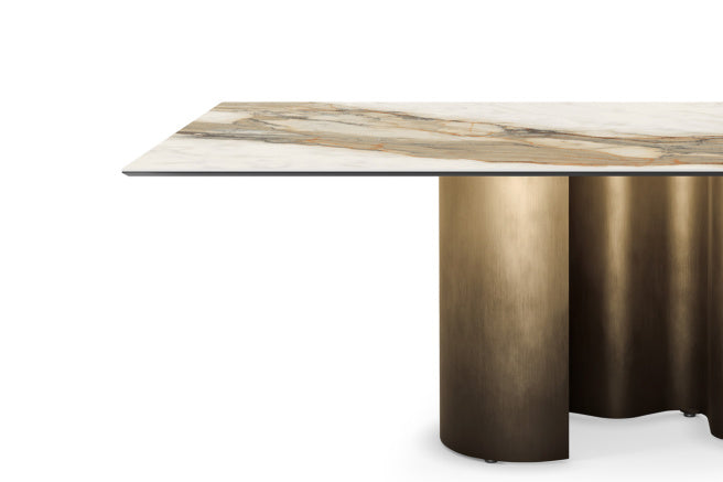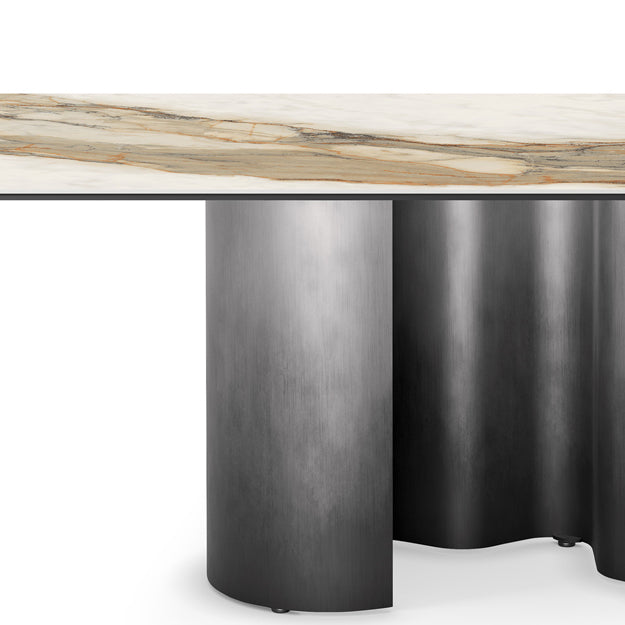 The Cattelan Italia Papelito Keramik Dining Table offers the signature sculptural elegance of the Papel collection in a more compact, versatile form. Designed by Studio Kronos, its gracefully curved base—resembling a folded sheet of paper—supports a luxurious ceramic top bonded to tempered glass, combining contemporary beauty with exceptional durability. Perfect for smaller dining spaces or stylish apartments, the Papelito Keramik is available in refined shapes including barrel, oval, rectangular, and biscuit, each designed to comfortably seat up to eight guests. The wide array of premium Italian ceramic finishes, paired with sophisticated metal base options, makes it a stunning centrepiece for modern interiors.