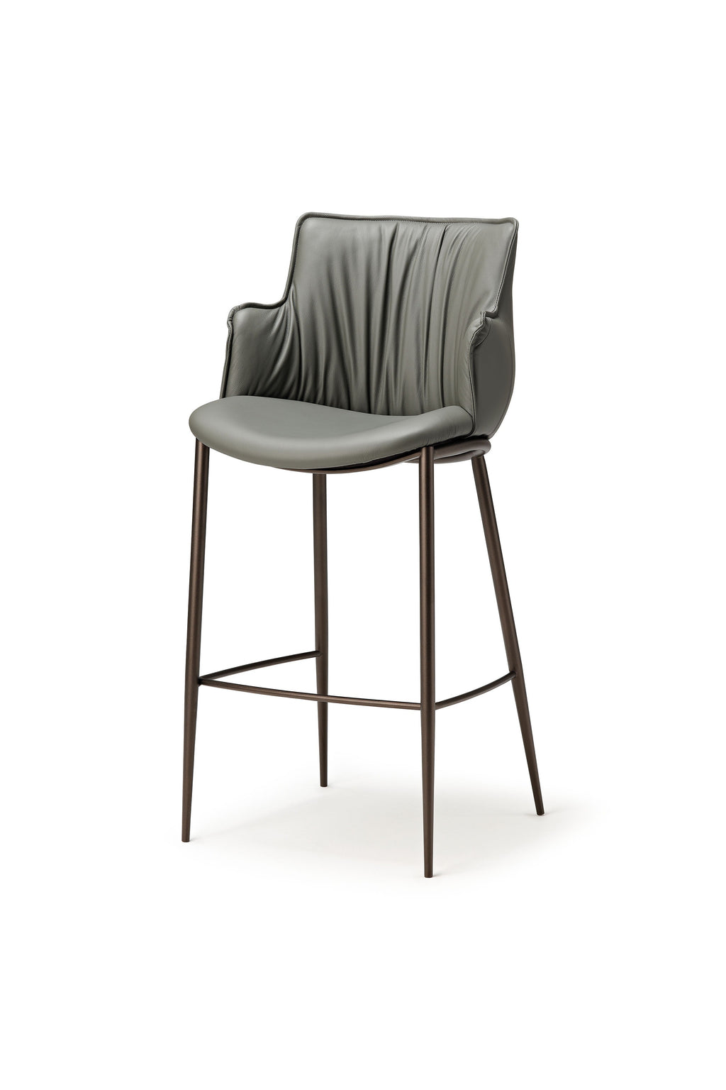 The Rihanna ML stool, unveiled in 2022, is an emblem of Cattelan Italia’s mastery in merging sculptural form and premium comfort. Defined by its signature padded armrests, softly folded backrest, and enveloping curves, Rihanna ML brings a welcoming, elegant presence to modern kitchens, lounges, or contract environments. Its taut, rounded shell contrasts beautifully with interior quilting, while the steel base provides both lightness and stability. Available in a range of rich embossed lacquered steel finishes and sumptuous covering options, Rihanna ML offers two seat heights for tailored use at bar or counter. Every detail is realized with Italian precision, ensuring long-lasting beauty and function.