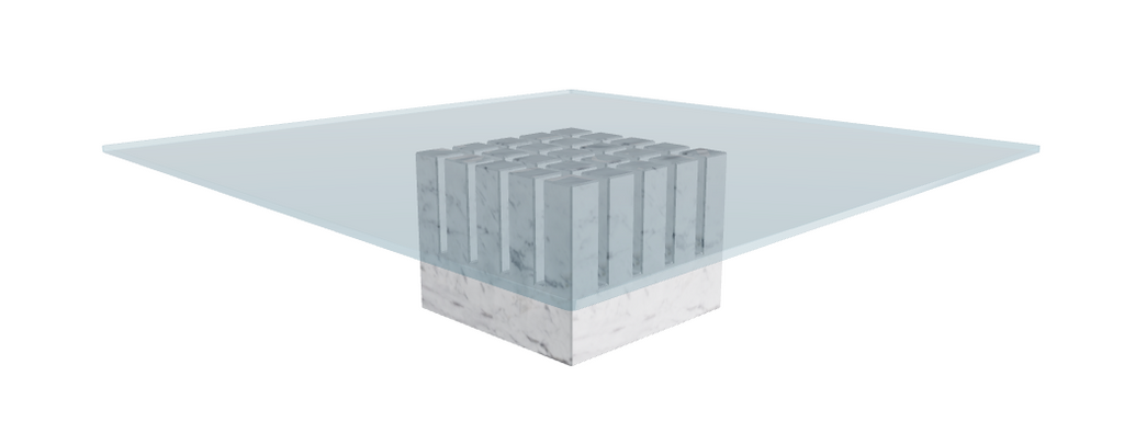 - Architectural Silhouette: Features a striking base crafted from polished White Carrara marble, forming an intricate interlocking pattern that contrasts beautifully with the clean glass surface above.