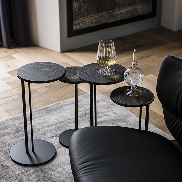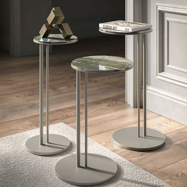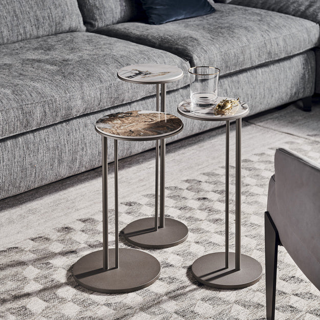 The Cattelan Italia Sting Coffee Table ø26x45h brings understated luxury to compact living areas with its graceful proportions and exquisite material palette. This elegant side table features a slightly wider ceramic top balanced on a slender, tapered metal base, offering a modern accent that complements a variety of interior styles. Perfect for living rooms, bedrooms, or offices, the Sting table blends effortlessly into sophisticated, contemporary settings.