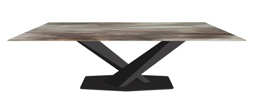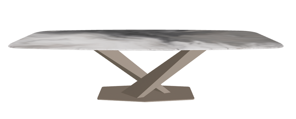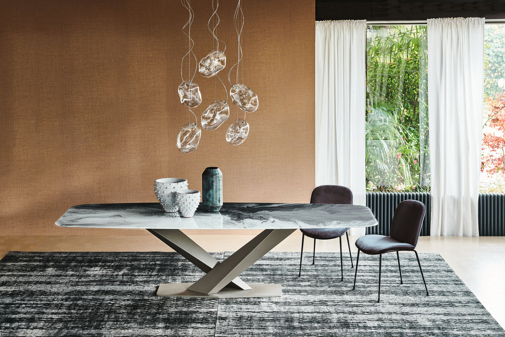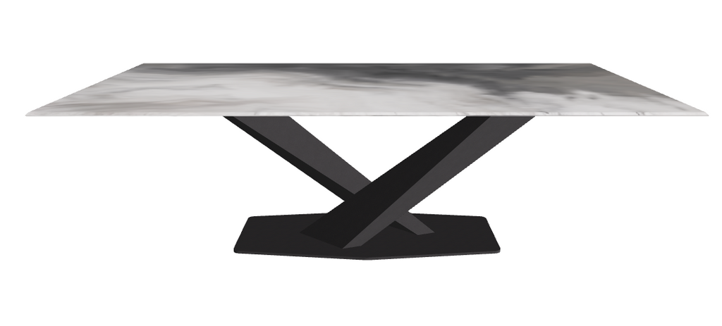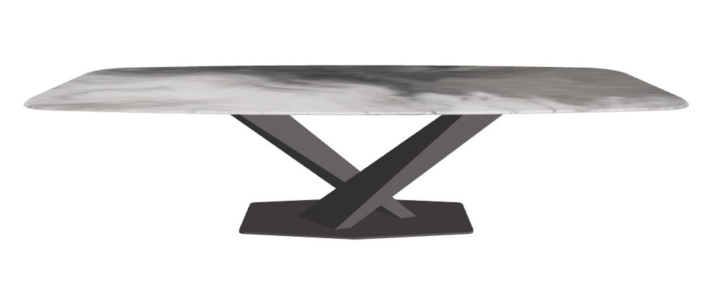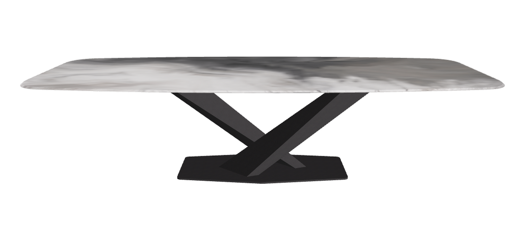 The Cattelan Italia Stratos CrystalArt Dining Table embodies the boldest expression of contemporary Italian dining—where art, architecture, and daily function collide in a spectacular centerpiece. The showstopping “CrystalArt” top is a genuine work of art: a digitally printed, extra-clear glass surface shimmering with intricate marble or abstract motifs, available in both sleek rectangular and inviting barrel-shaped silhouettes. Anchoring the table is the signature Stratos base—a dramatic, angular structure formed from interlocking metal blades, offered in a refined palette of embossed lacquered finishes.