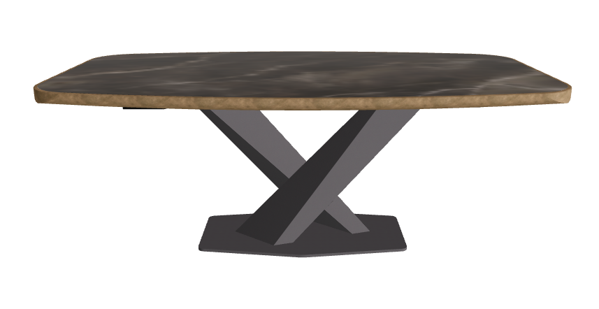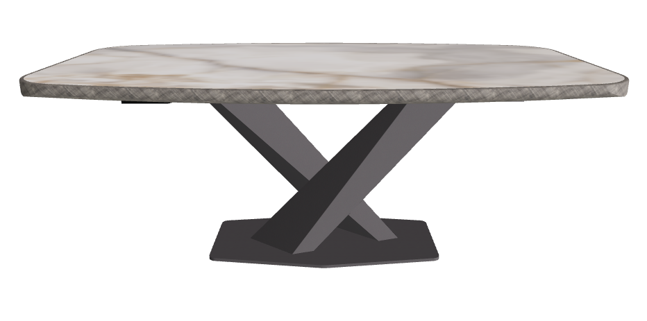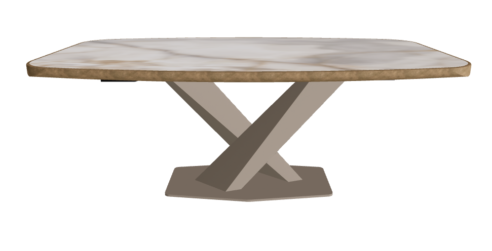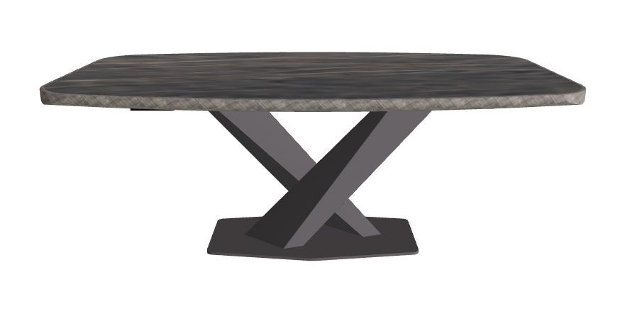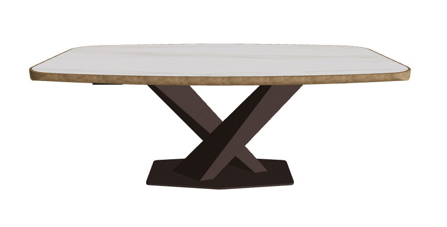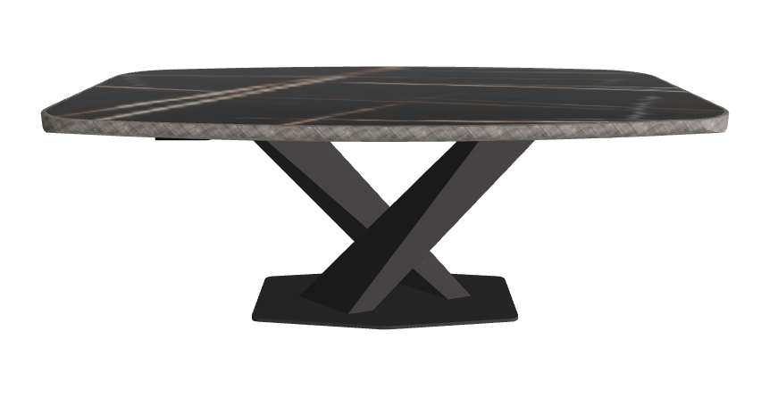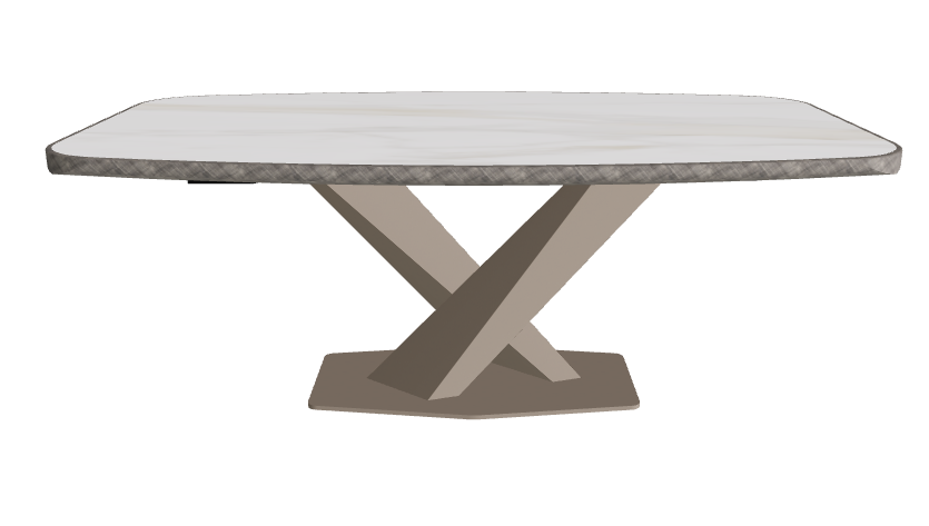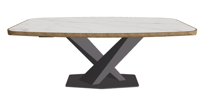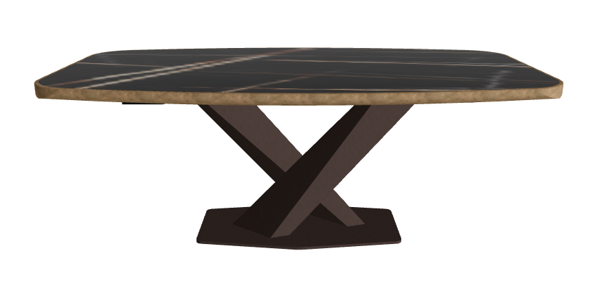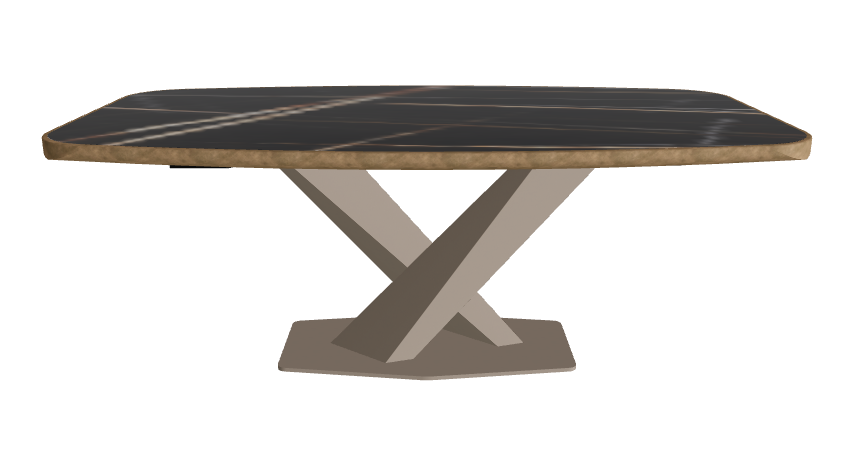 - Premium Barrel-Shaped Ceramic Top: 200×120 cm surface with a gently curved form and exclusive brushed metal edge, offering a bespoke tactile detail and dramatic presence.